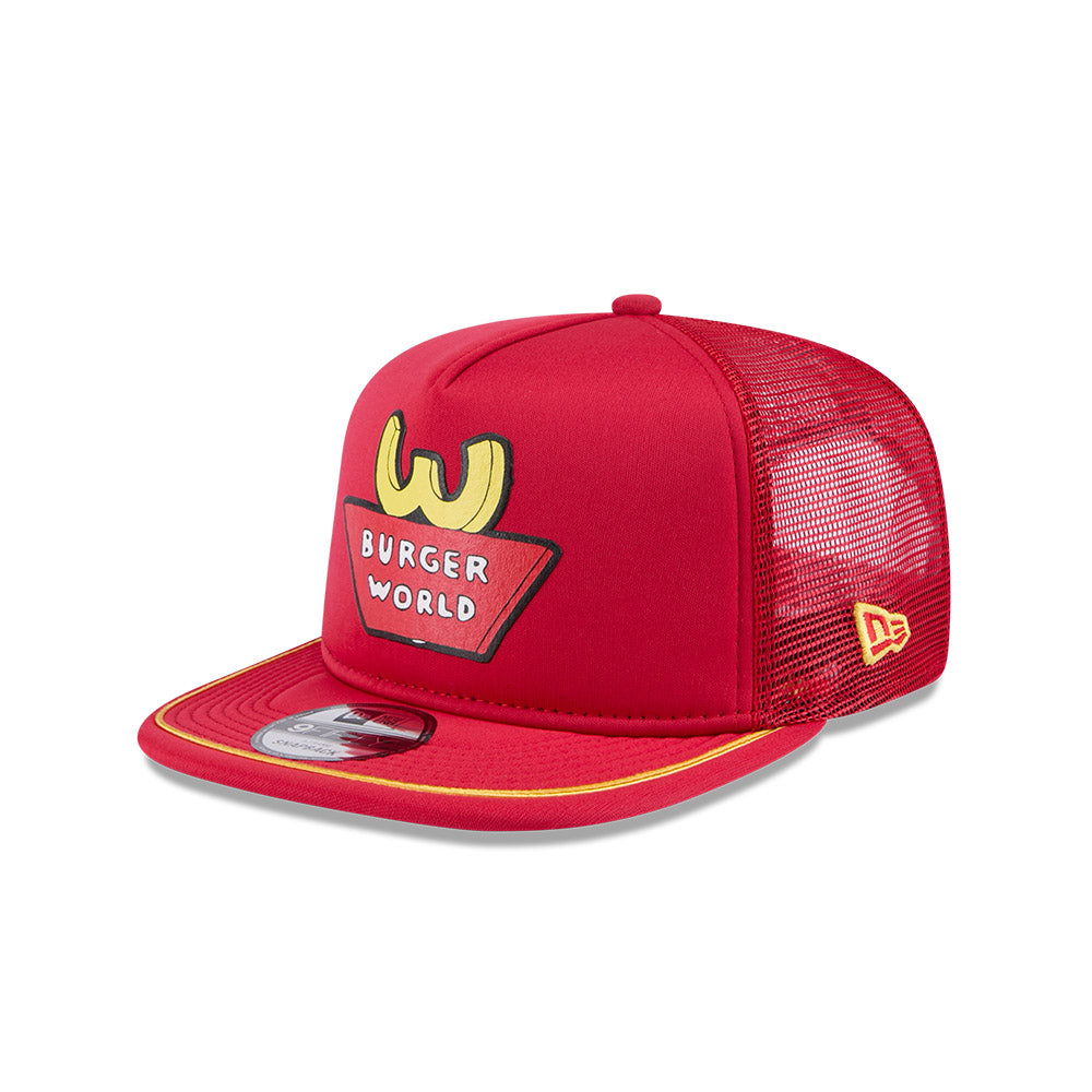 Esta gorra plana New Era 9FIFTY A-Frame de la colección Beavis And Butt-Head presenta un diseño en color rojo con el icónico lugar de trabajo de los personajes en los paneles frontales, el nombre de la caricatura del lado derecho, malla trucker al reverso y el flag de New Era bordado del lado izquierdo. Cómprala ya.
