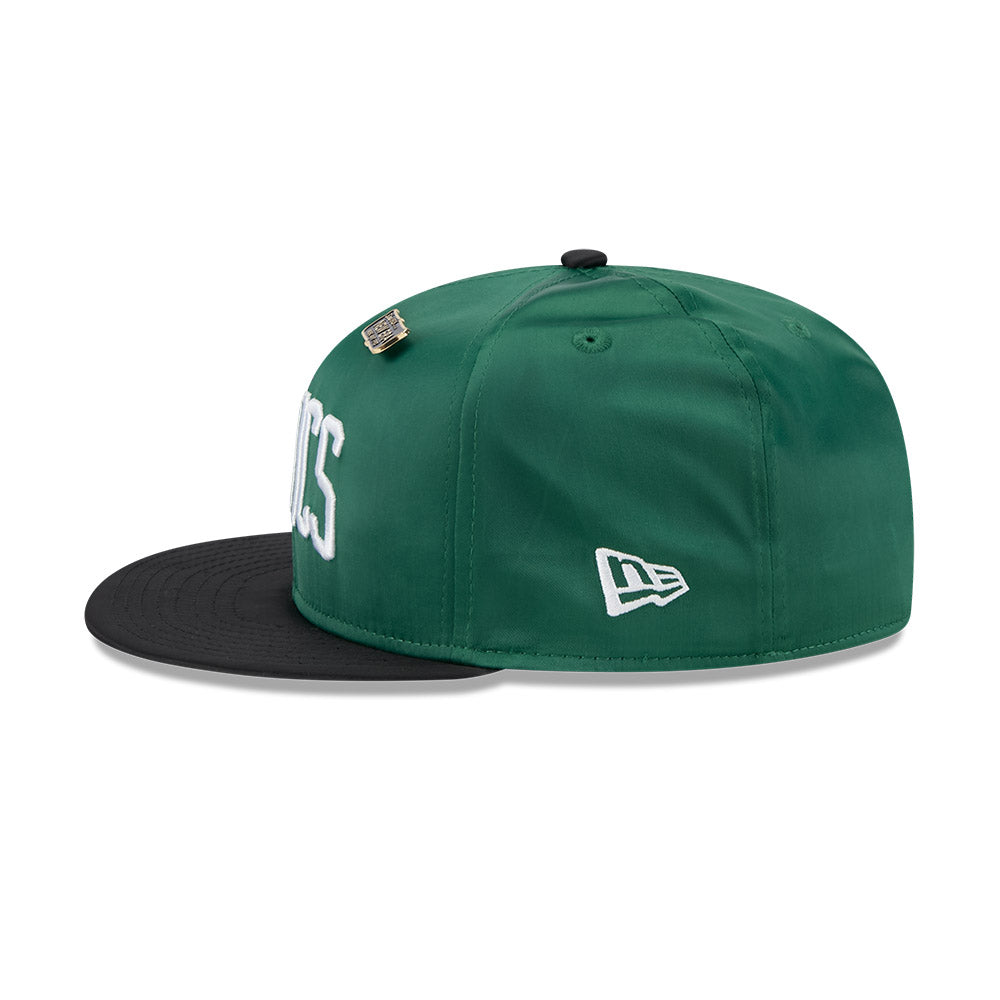 Esta gorra plana New Era 59FIFTY de Boston Celtics de la colección NBA Satin presenta un diseño satinado con el nombre de los Celtics bordado en los paneles frontales acompañado de un pin New Era, el logotipo del equipo del lado derecho, el logo de la NBA al reverso y el flag de New Era bordado del lado izquierdo. Cómprala ya.