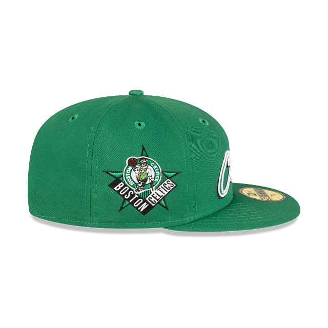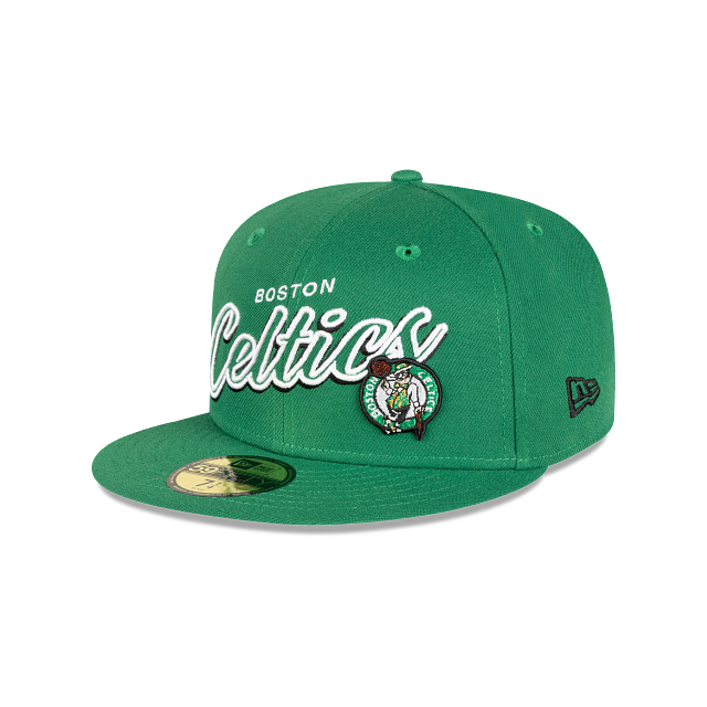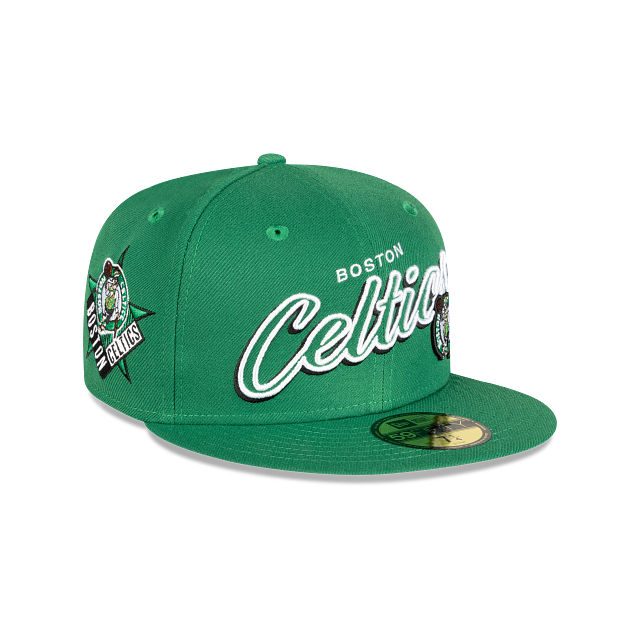 Esta gorra plana New Era 59FIFTY de Boston Celtics de la colección NBA Script Sided presenta un diseño con el nombre y logotipo de los Celtics bordados en los paneles frontales, un parche conmemorativo del lado derecho, el logo de la liga al reverso y el flag de New Era bordado del lado izquierdo. Luce con estilo y cómprala ya.