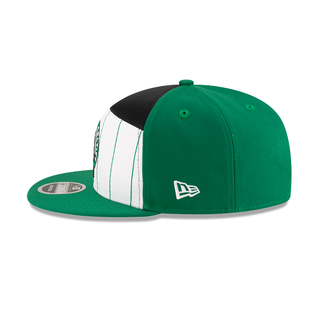 Esta gorra plana New Era 9FIFTY Split Panel de Boston Celtics de la colección NBA Tip Off 2025 presenta un diseño pinstripe con el logotipo de los Celtics bordado en el panel frontal, el logo de la NBA del lado derecho, el nombre del equipo en la parte de atrás y el flag de New Era bordado del lado izquierdo. Cómprala ya.