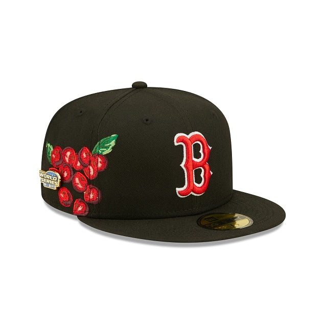 Esta gorra New Era 59FIFTY de Boston Red Sox MLB Fruit presenta el logotipo de los Red Sox en los paneles frontales, el logo de MLB Batterman en la parte trasera y una fruta bordada en el lado derecho. Detalles adicionales incluyen un pin de World Series. Cómprala ya.