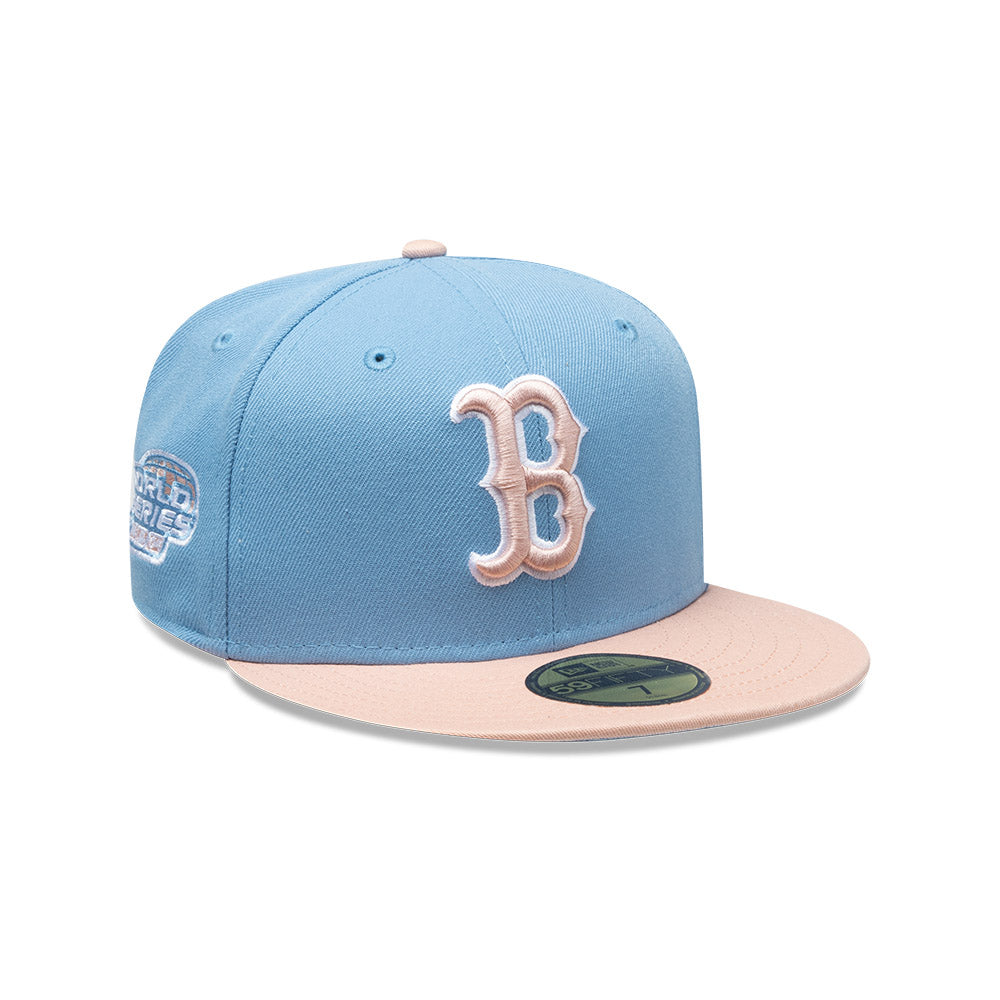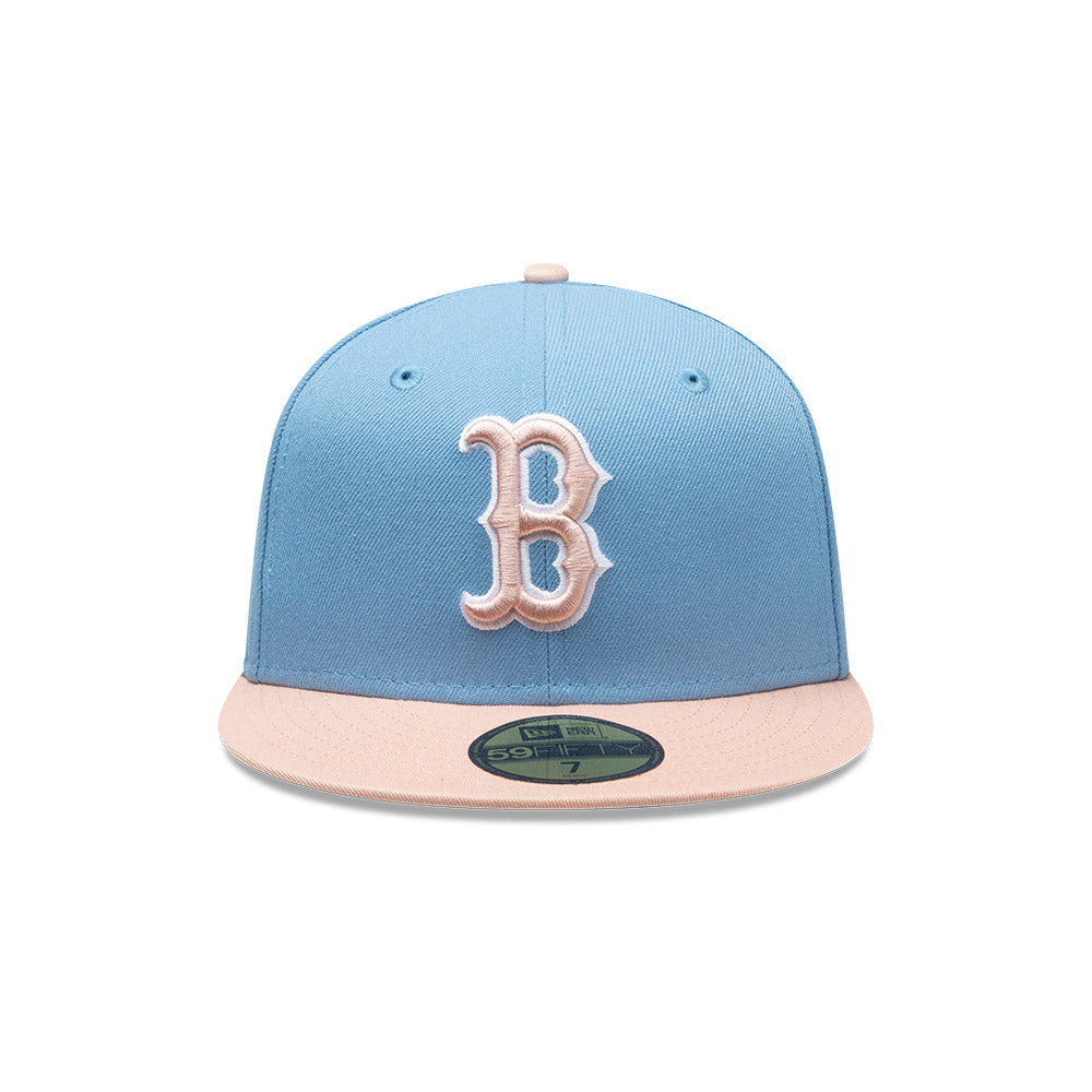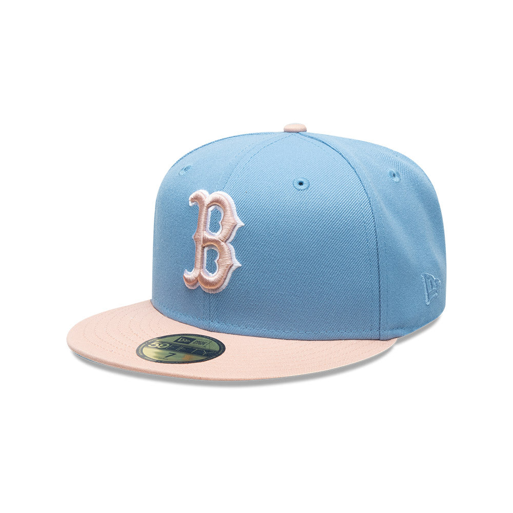 Esta gorra plana New Era 59FIFTY de Boston Red Sox de la colección MLB Sky Blue presenta un diseño en color azul en la corona, el logotipo de los Red Sox bordado en los paneles frontales, un parche conmemorativo del lado derecho, el MLB Batterman al reverso y el flag de New Era bordado del lado izquierdo. Cómprala ya.