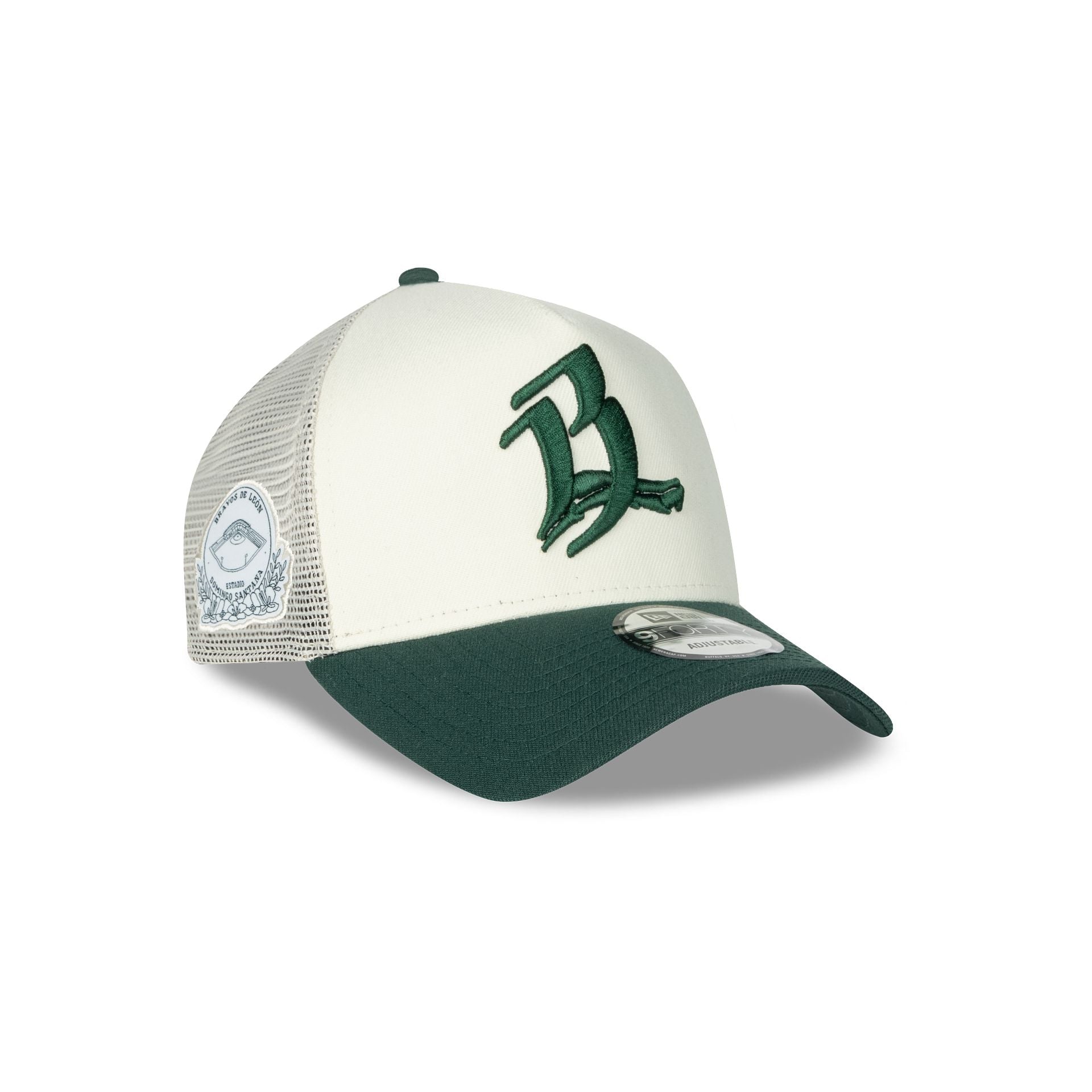 Esta gorra New Era 9FORTY AF Trucker de Bravos de León de la colección LMB Athleisure presenta el logotipo de los Bravos bordado en los paneles frontales, un parche del estadio del lado derecho, mesh al reverso y el flag de New Era bordado en el lado izquierdo. Luce con estilo y cómprala ya.