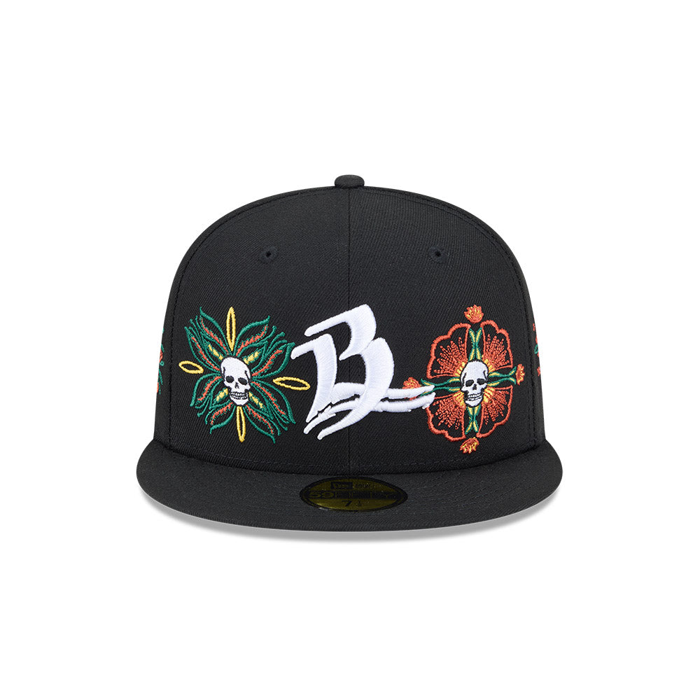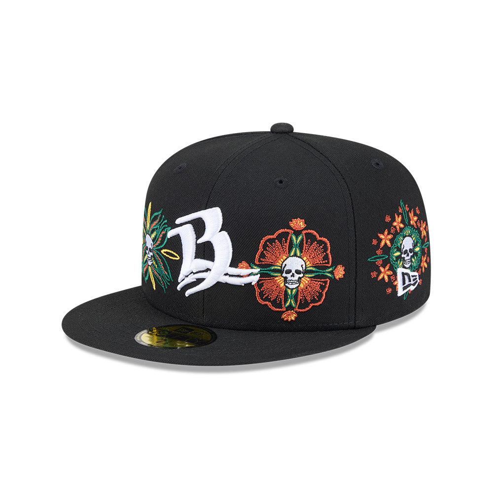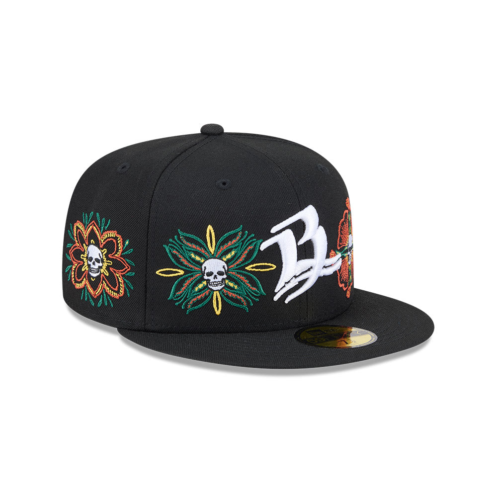 Esta gorra plana New Era 59FIFTY de Bravos de León de la colección LMB Skull and Flowers presenta el logotipo de los Bravos bordado en los paneles frontales, calaveras dentro de flores en la corona, el logo de la LMB en la parte de atrás y el flag de New Era bordado del lado izquierdo. Cómprala ya.