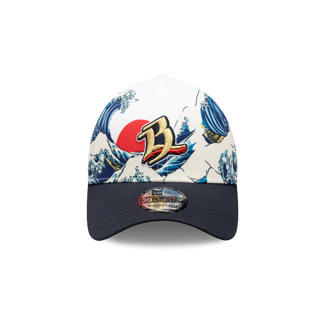 Esta gorra curva New Era 39THIRTY de Bravos de León de la colección LMB Team Exclusive presenta un diseño inspirado en la cultura japonesa, el logotipo de los Bravos bordado en los paneles frontales, el nombre del equipo al reverso y el flag de New Era bordado del lado izquierdo. Cómprala ya.