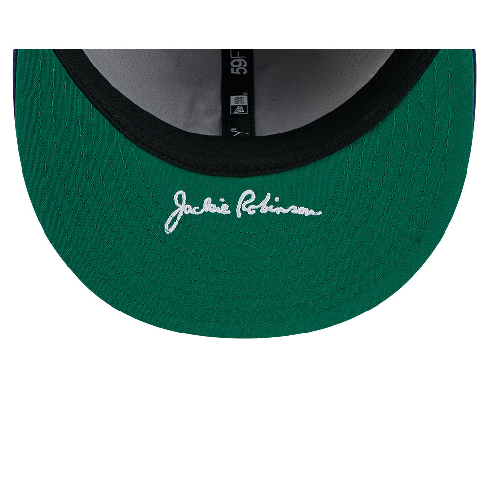 Esta gorra plana New Era 59FIFTY Retro Crown de Brooklyn Dodgers de la colección MLB Jackie Robinson Day 2025 presenta el logotipo de los Dodgers bordado en los paneles frontales, un parche conmemorativo Jackie Robinson Breaking Barriers del lado derecho, la firma del jugador en el undervisor, el MLB Batterman al reverso y el flag de New Era bordado del lado izquierdo. Cómprala ya.