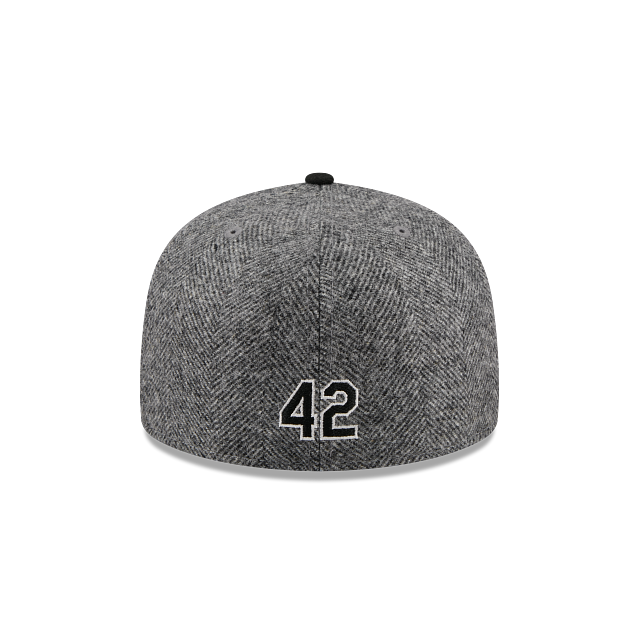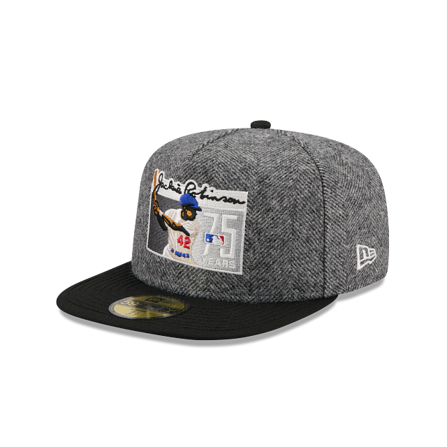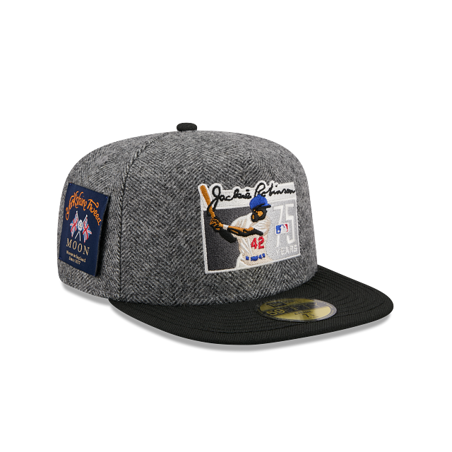 Esta gorra plana New Era 59FIFTY A-Frame de la colección MLB Jackie Robinson X Moon presenta una confección en lana con Jackie Robinson en el panel frontal, etiqueta de Moon Workshire Tweed del lado derecho, el número 42 en la parte de atrás y el flag de New Era bordado del lado izquierdo. Cómprala ya.