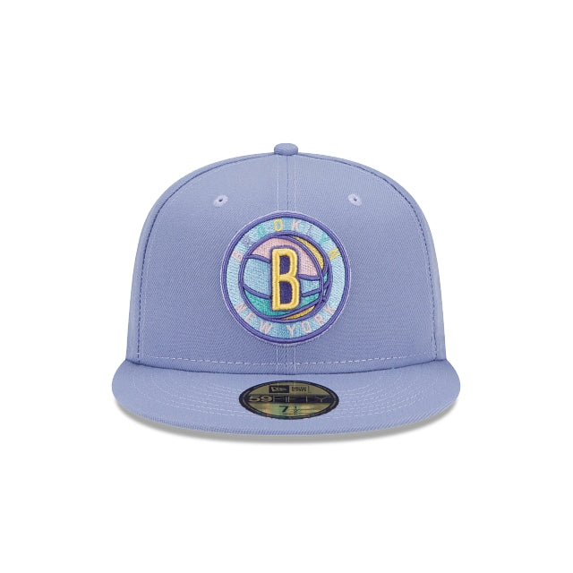 Cura tus antojos con esta 59FIFTY de Brooklyn Nets de la colección Candy Collection con el logotipo del equipo bordado con varios colores en los paneles frontales, el logotipo de la NBA a juego en la parte trasera y una undervisor color aqua. Cómprala ya.