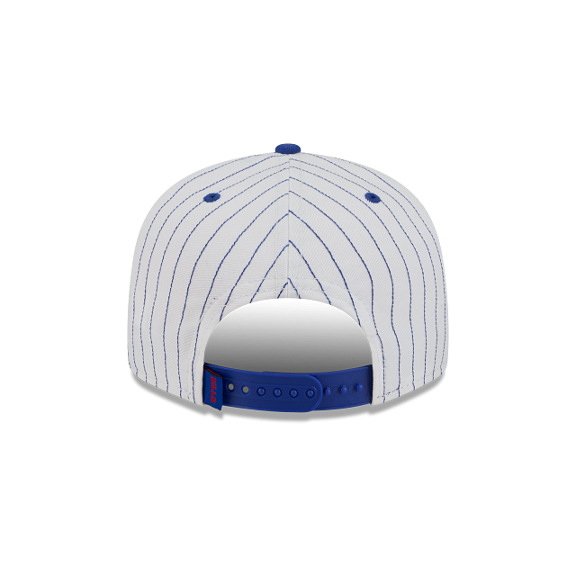 Esta gorra plana New Era 9FIFTY de Buffalo Bills de la colección NFL Deceptor presenta un diseño pinstripe con la inicial de los Bills junto con su logotipo bordado en los paneles frontales, el logo del equipo del lado derecho y el flag de New Era bordado del lado izquierdo. Cómprala ya.