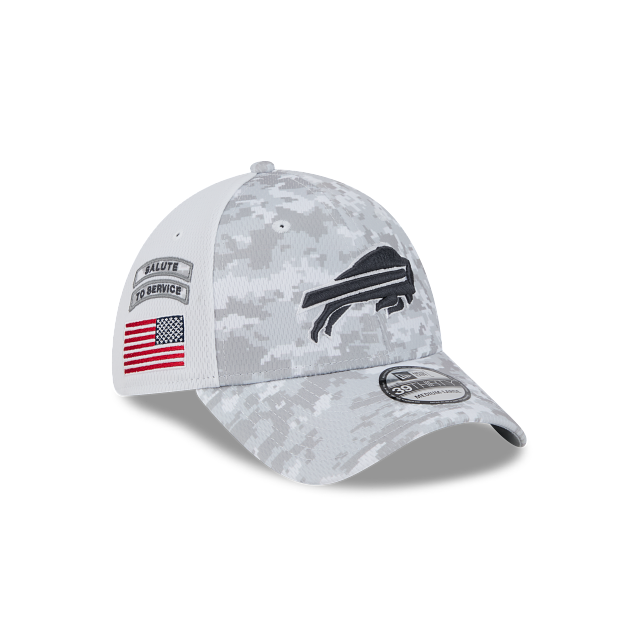 Esta gorra curva New Era 39THIRTY de Buffalo Bills de la colección NFL Salute to Service 2024 presenta un diseño de camuflaje con el logotipo de los Bills bordado en los paneles frontales, la bandera de Estados Unidos del lado derecho, el logo de la NFL al reverso y el flag de New Era bordado del lado izquierdo. Apoya a tu equipo y cómprala ya.