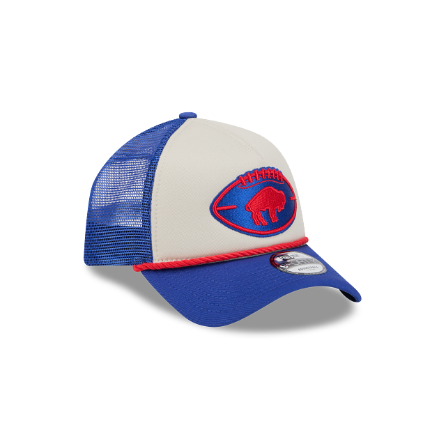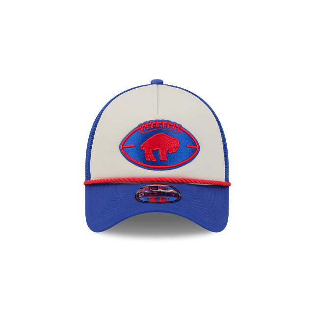 Esta gorra curva New Era 9FORTY AF de Buffalo Bills de la colección NFL Sideline Historic 2024 presenta un diseño con el logotipo histórico de los Bills dentro de un balón de futbol americano bordado en los paneles frontales, una decoración de cuerda trenzada en el visor, malla trucker y el logo de la NFL al reverso y el flag de New Era bordado del lado izquierdo. Apoya a tu equipo y cómprala ya.