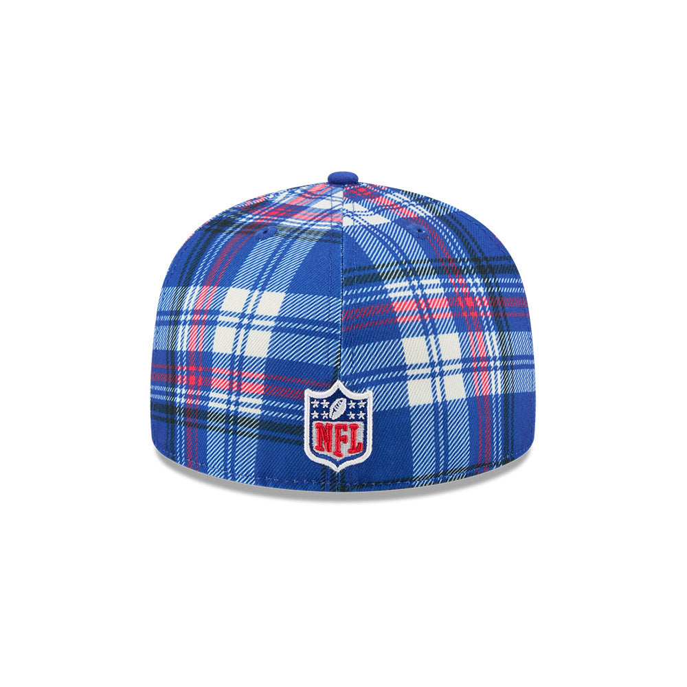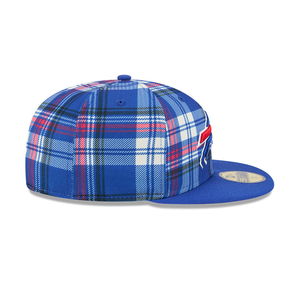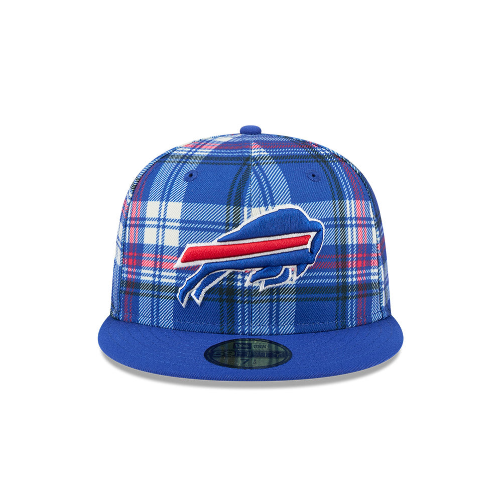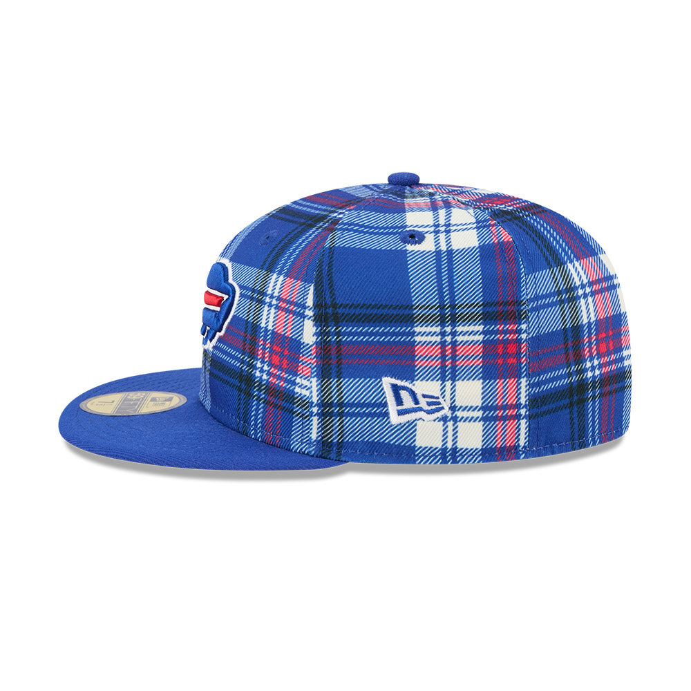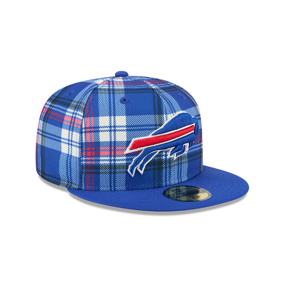 Esta gorra plana New Era 59FIFTY de Buffalo Bills de la colección NFL Sideline 2024 presenta un diseño a cuadros con el logotipo de los Bills bordado en los paneles frontales y el flag de New Era bordado en el lado izquierdo. Cómprala ya.