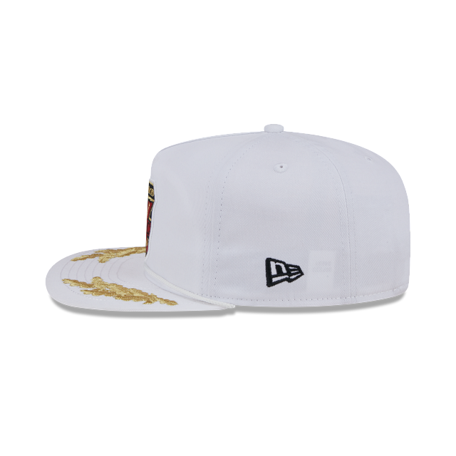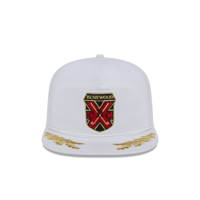 Vive la nostalgia con Los locos del golf con esta gorra New Era Golfer de Caddy Shack que presenta el escudo de Bushwood CBC bordado en los paneles frontales de un diseño totalmente blanco, laureles dorados en la visera y el flag de New Era bordado en el lado izquierdo. No te pierdas este artículo de colección y cómprala ya.