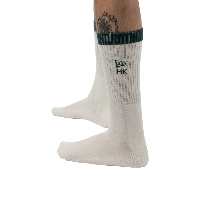 Estos Calcetines New Era en colaboración con Hermanos Koumori presenta los colores chrome y verde de la colección, las iniciales de los Hermanos Koumori y el flag de New Era bordados a un costado. Entrena con estilo, cómprala ya.