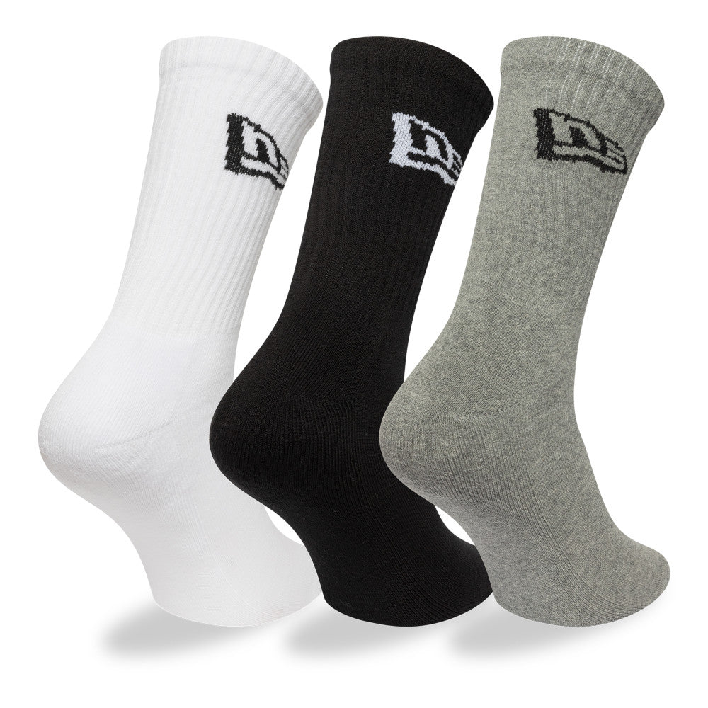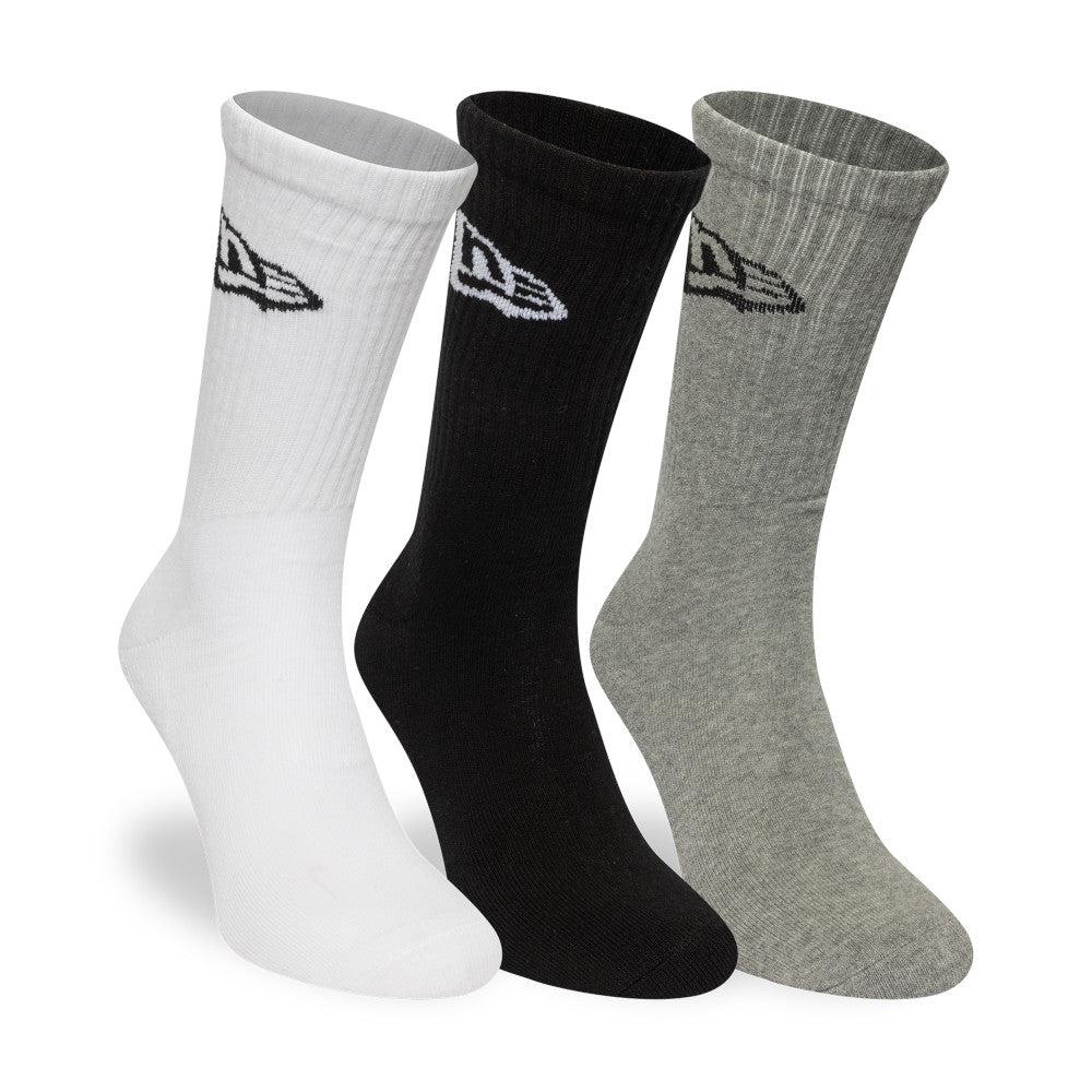 Lleva el estilo auténtico de New Era en cada paso con estos Calcetines Largos New Era 3 Pack de la colección New Era Flag que presentan diseños en color blanco, negro y gris con el flag de New Era en la parte superior y el nombre de New Era al costado izquierdo. Cómpralos ya.