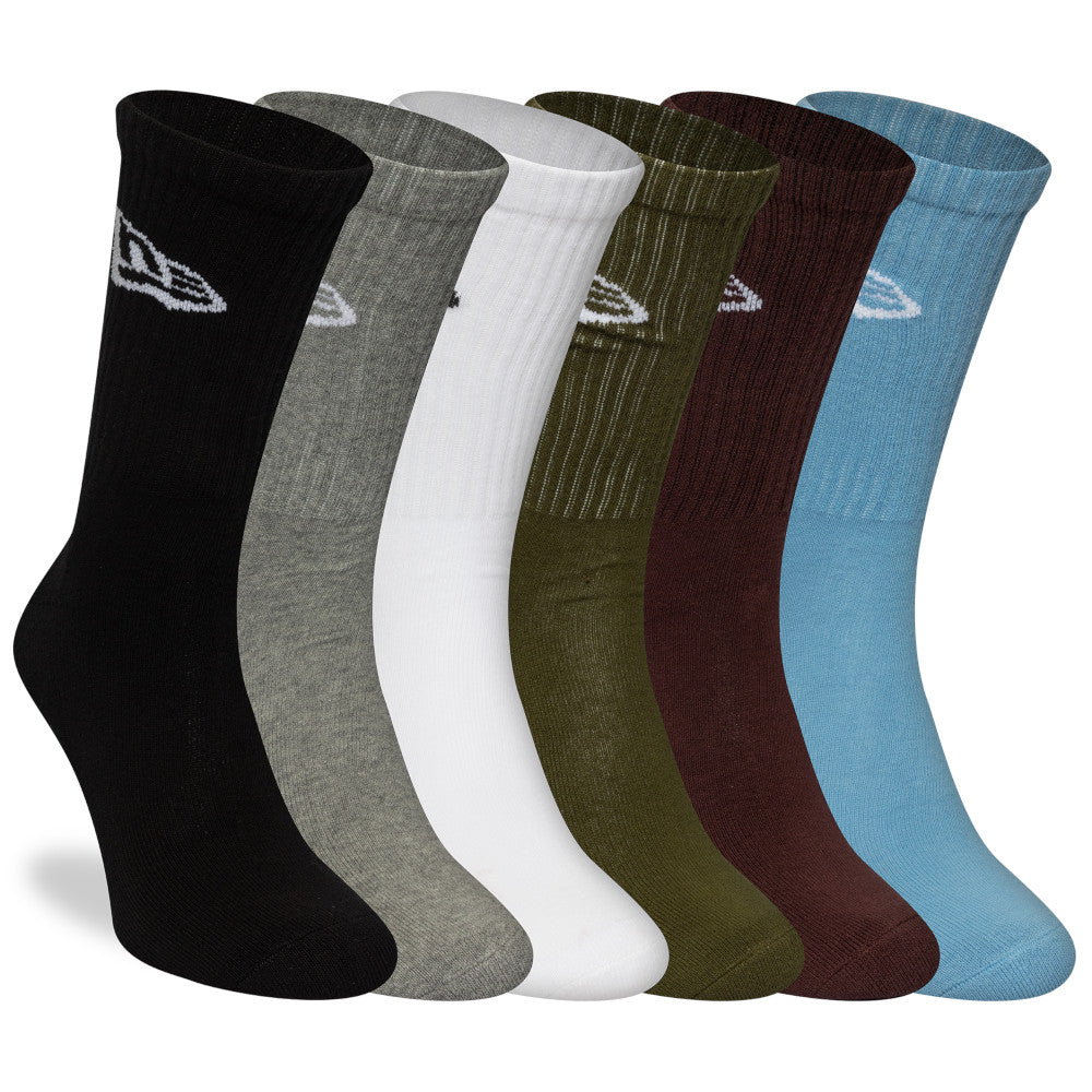 Lleva el estilo auténtico de New Era en cada paso con estos Calcetines Largos New Era 6 Pack de la colección New Era Flag que presentan diseños de varios colores como azul, verde, negro, gris, blanco y café con el flag de New Era en la parte superior y el nombre de New Era al costado izquierdo. Cómpralos ya.