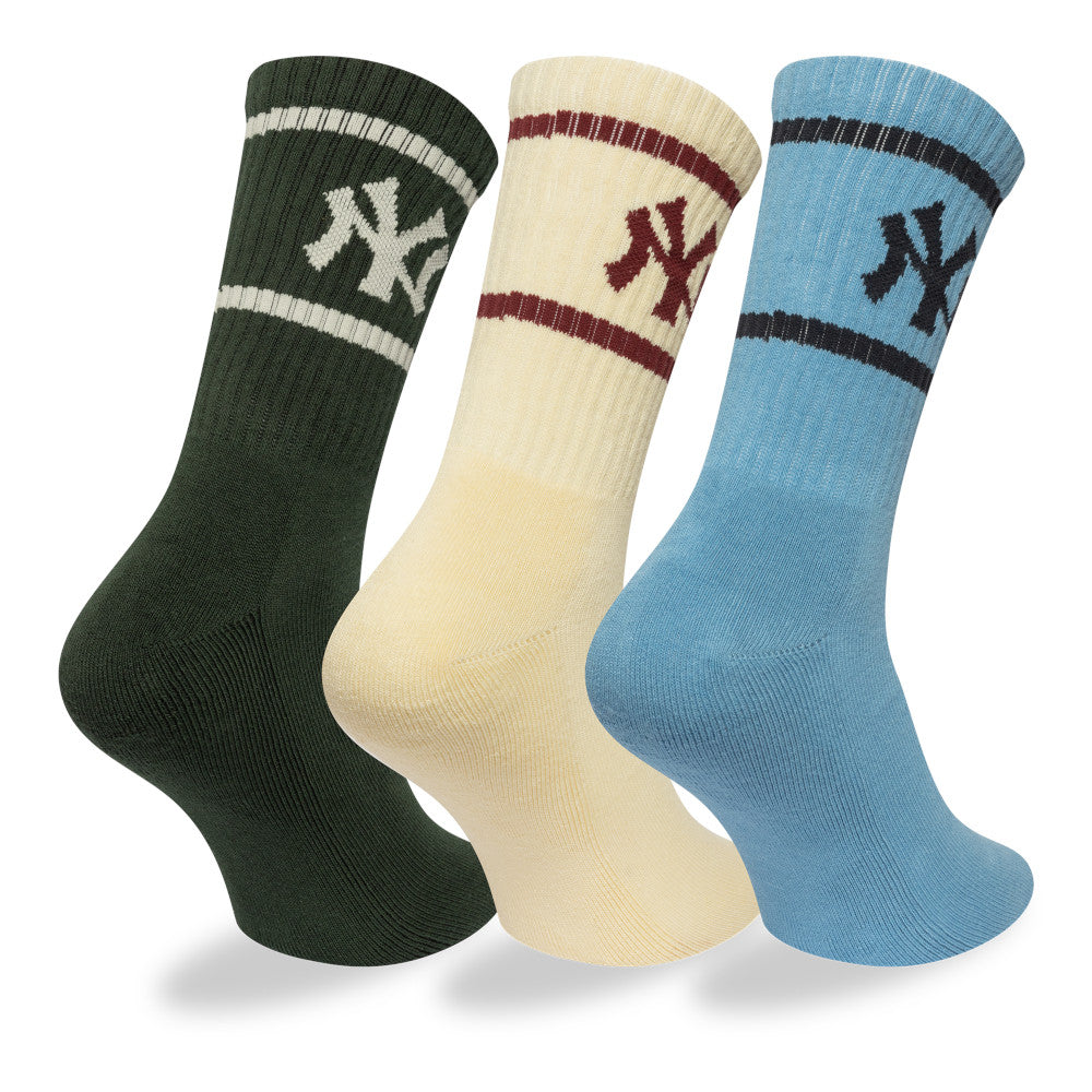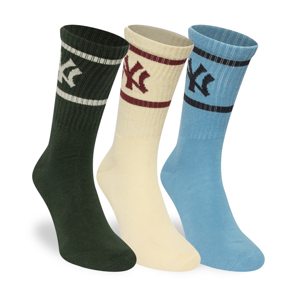 Lleva a tu equipo contigo en cada paso con estos Calcetines Largos New Era 3 Pack de New York Yankees de la colección MLB Crew que presentan un diseño en diferentes colores con el logotipo de los Yankees en la parte superior, el nombre del equipo al costado izquierdo y el flag de New Era. Cómpralos ya.