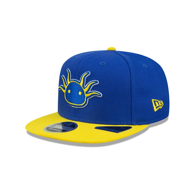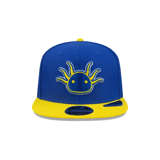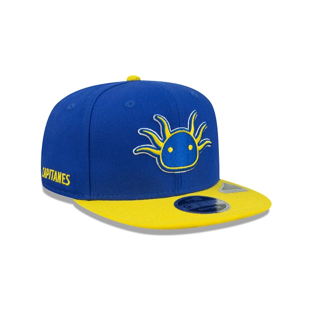 Representa al equipo de básquetbol profesional de la CDMX con esta gorra New Era 9FIFTY de Capitanes de Ciudad de México Ajolote la cual presenta un logo de Ajolote bordado en los paneles frontales, el nombre de capitanes en el lado derecho y el logo de la NBA G League en la parte trasera. ¡Vamos, Capitanes! Cómprala ya.