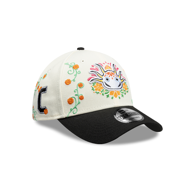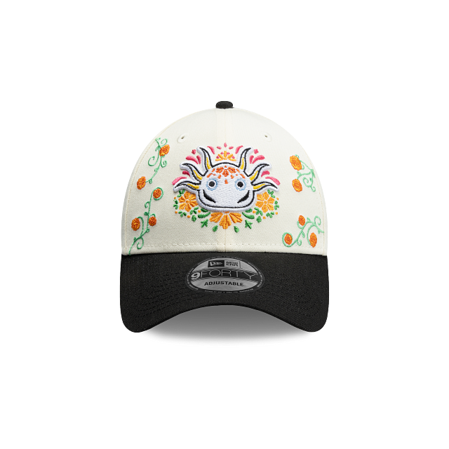 Esta gorra curva New Era 9FORTY de Capitanes de Ciudad de México de la NBA G League presenta un diseño inspirado en el Día de Muertos con el ajolote de los Capitanes bordado en los paneles frontales, el logo de la NBA G League en la parte de atrás, etiqueta con la bandera de México en el broche y el flag de New Era bordado del lado izquierdo. Cómprala ya.