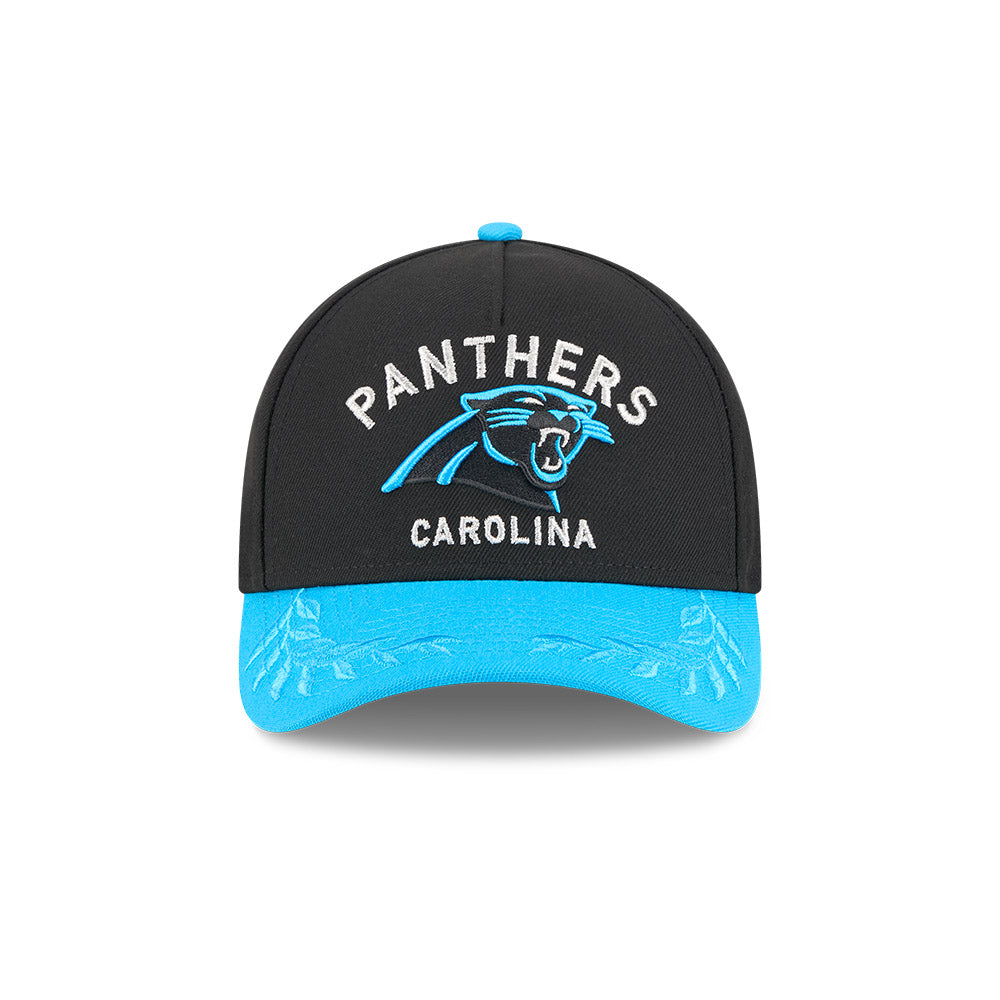 Esta gorra curva New Era 9FORTY M-Crown A-Frame de Carolina Panthers de la colección NFL Draft 2025 presenta el nombre y logotipo de los Panthers bordados en los paneles frontales, laureles bordados en el visor, el logo de la NFL al reverso y el flag de New Era bordado del lado izquierdo. Cómprala ya.