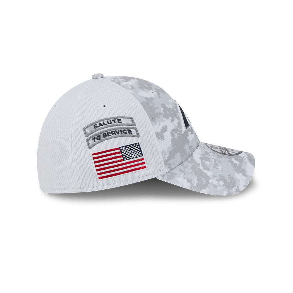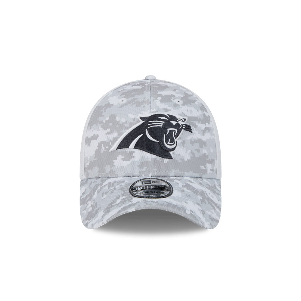 Esta gorra curva New Era 39THIRTY de Carolina Panthers de la colección NFL Salute to Service 2024 presenta un diseño de camuflaje con el logotipo de los Panthers bordado en los paneles frontales, la bandera de Estados Unidos del lado derecho, el logo de la NFL al reverso y el flag de New Era bordado del lado izquierdo. Apoya a tu equipo y cómprala ya.