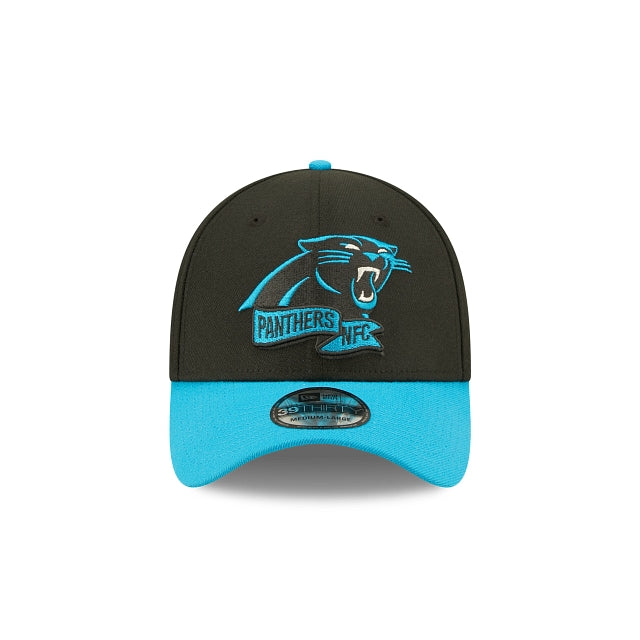 Lleva los colores de tu equipo esta temporada 2022 de la NFL. Esta gorra New Era 39THIRTY de Carolina Panthers NFL Sideline 2022 Two Tone presenta el logo del equipo bordado al frente a juego con una bandera con el nombre y su conferencia, un parche de la NFL en el lado derecho y un logo del equipo en la parte trasera. Cómpralo ya.