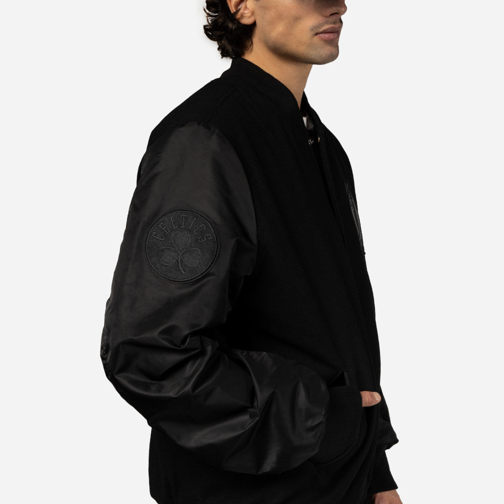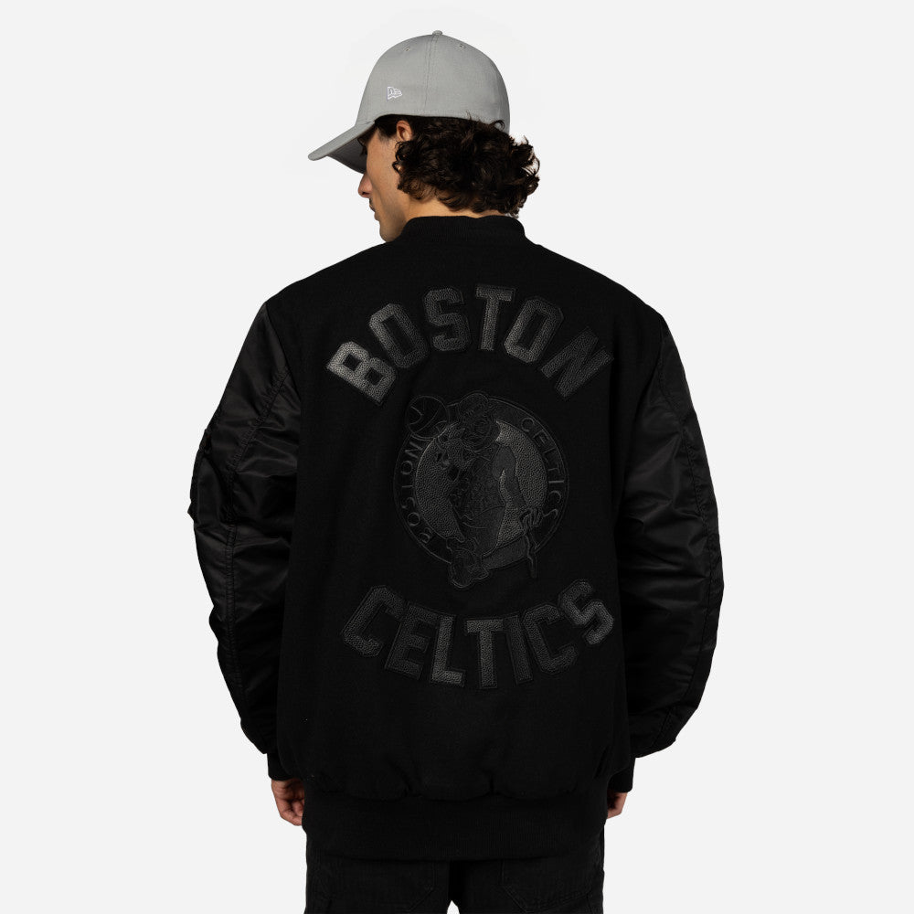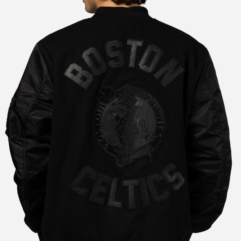 Esta Chamarra MA-1 New Era de Boston Celtics de la colección Alpha Industries X NBA presenta un diseño en color negro con el logotipo de los Celtics en la parte frontal, el nombre y logotipo en grande en la parte de atrás, un bolsillo en la manga izquierda con una etiqueta de Alpha y el flag de New Era bordado en la manga izquierda. Luce con estilo y cómprala ya.