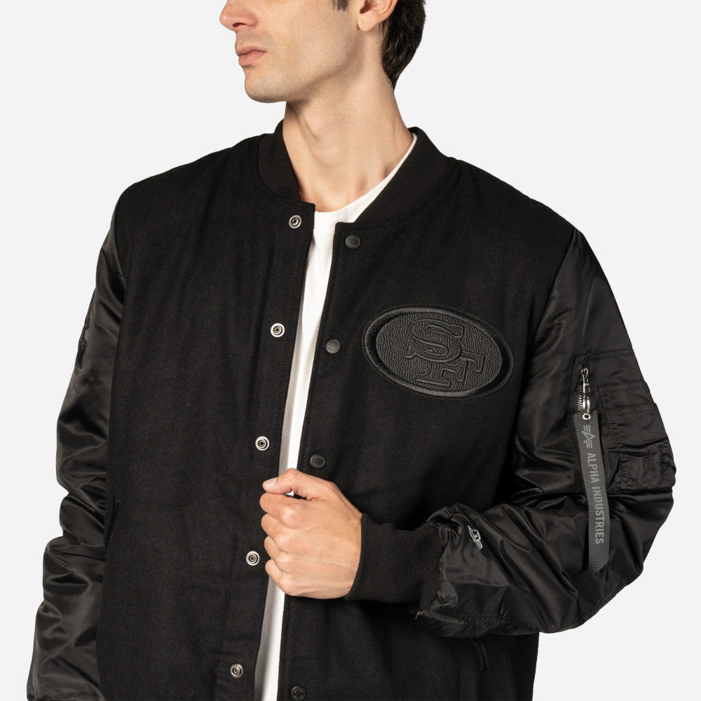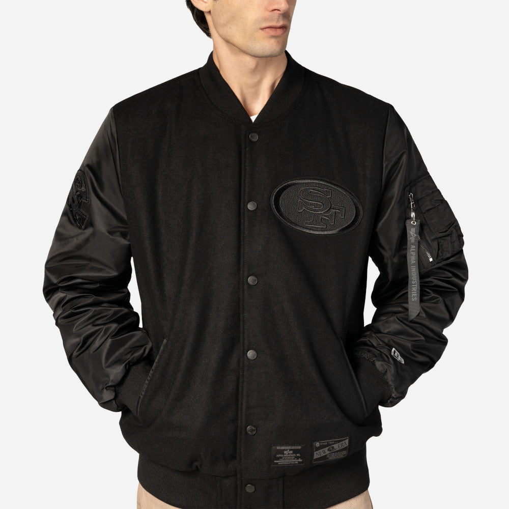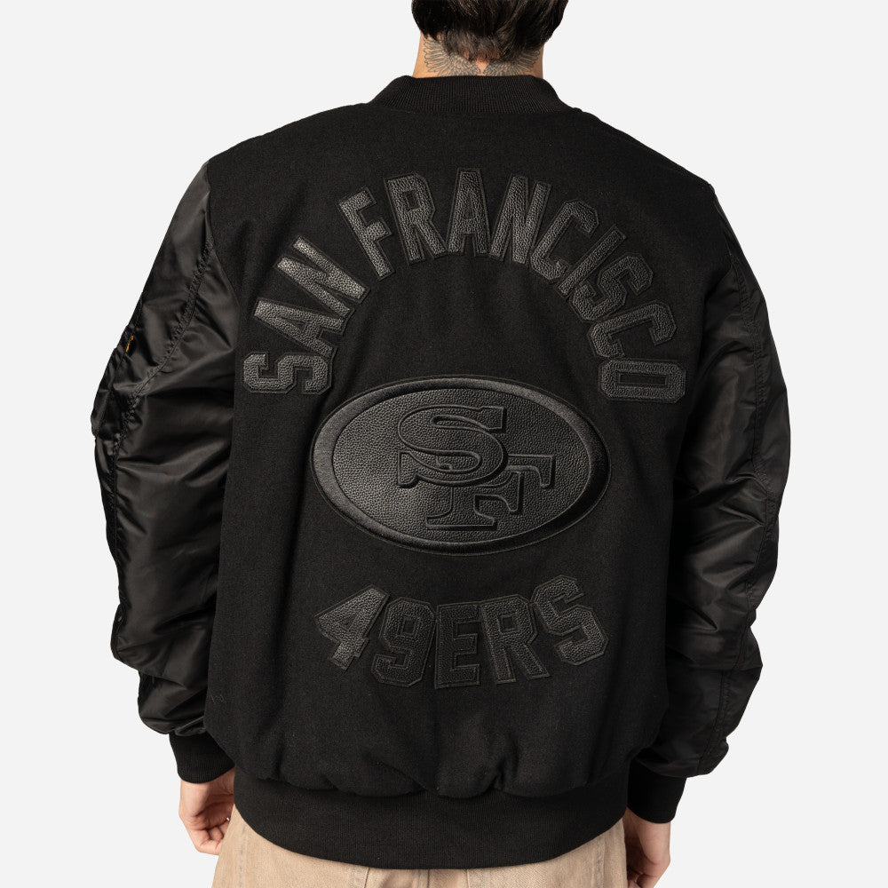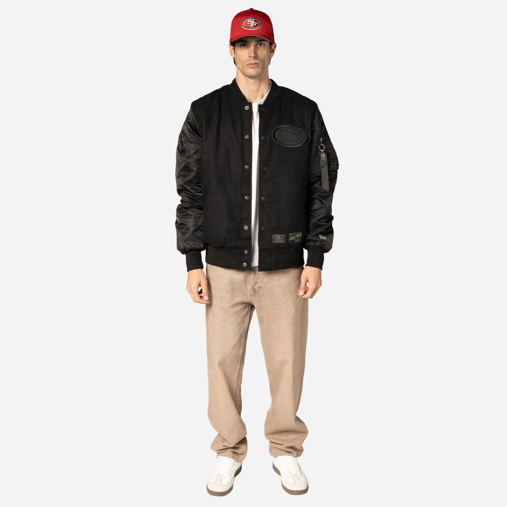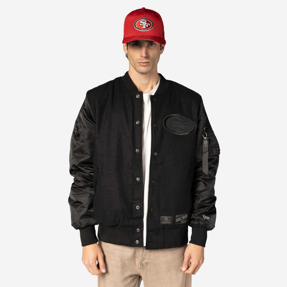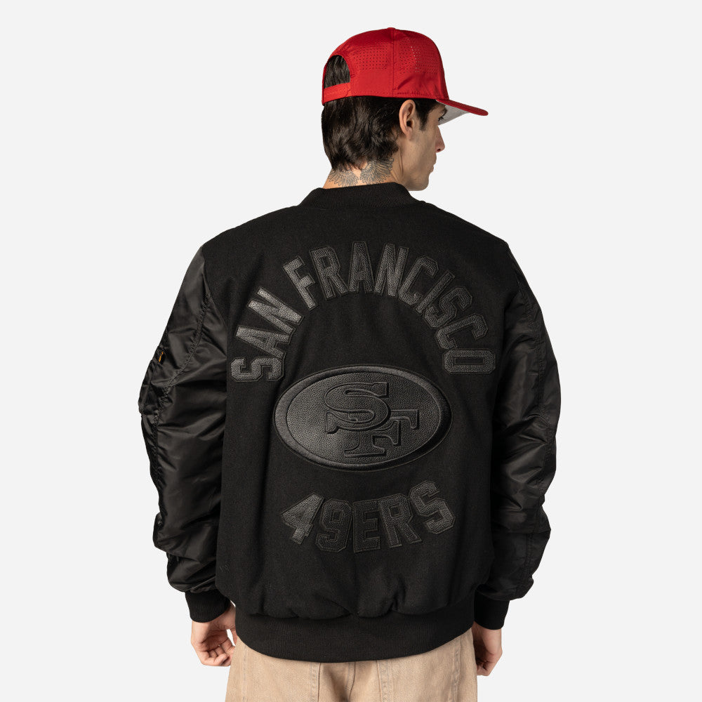 Esta Chamarra MA-1 New Era de San Francisco 49Ers de la colección Alpha Industries X NFL presenta un diseño en color negro con el logotipo de los 49Ers en la parte frontal, el nombre y logotipo en grande en la parte de atrás, un bolsillo en la manga izquierda con una etiqueta de Alpha y el flag de New Era bordado en la manga izquierda. Luce con estilo y cómprala ya.