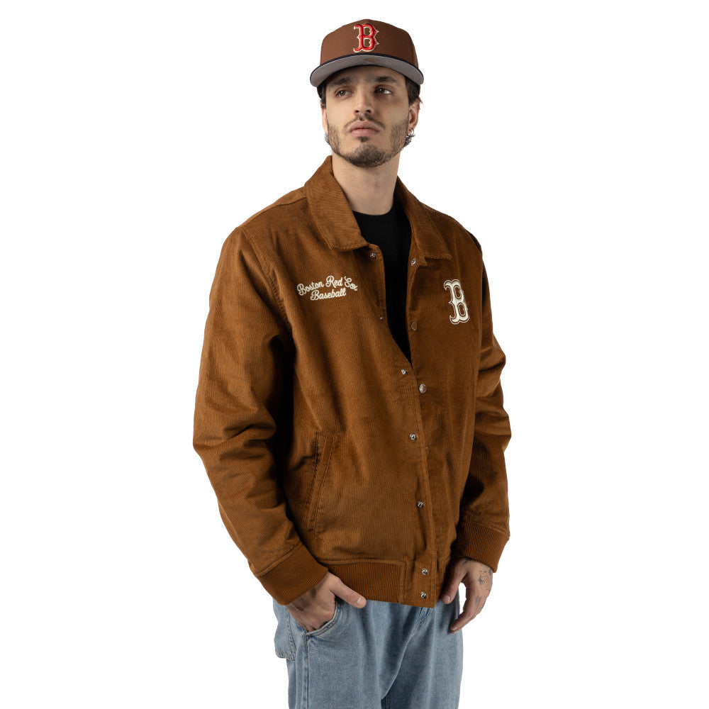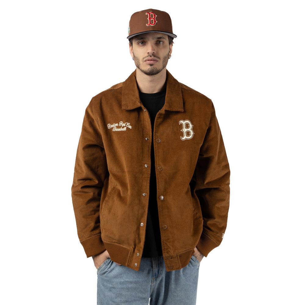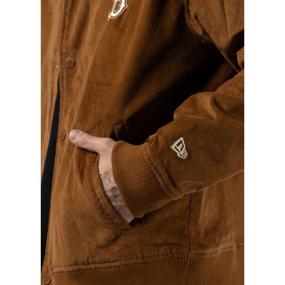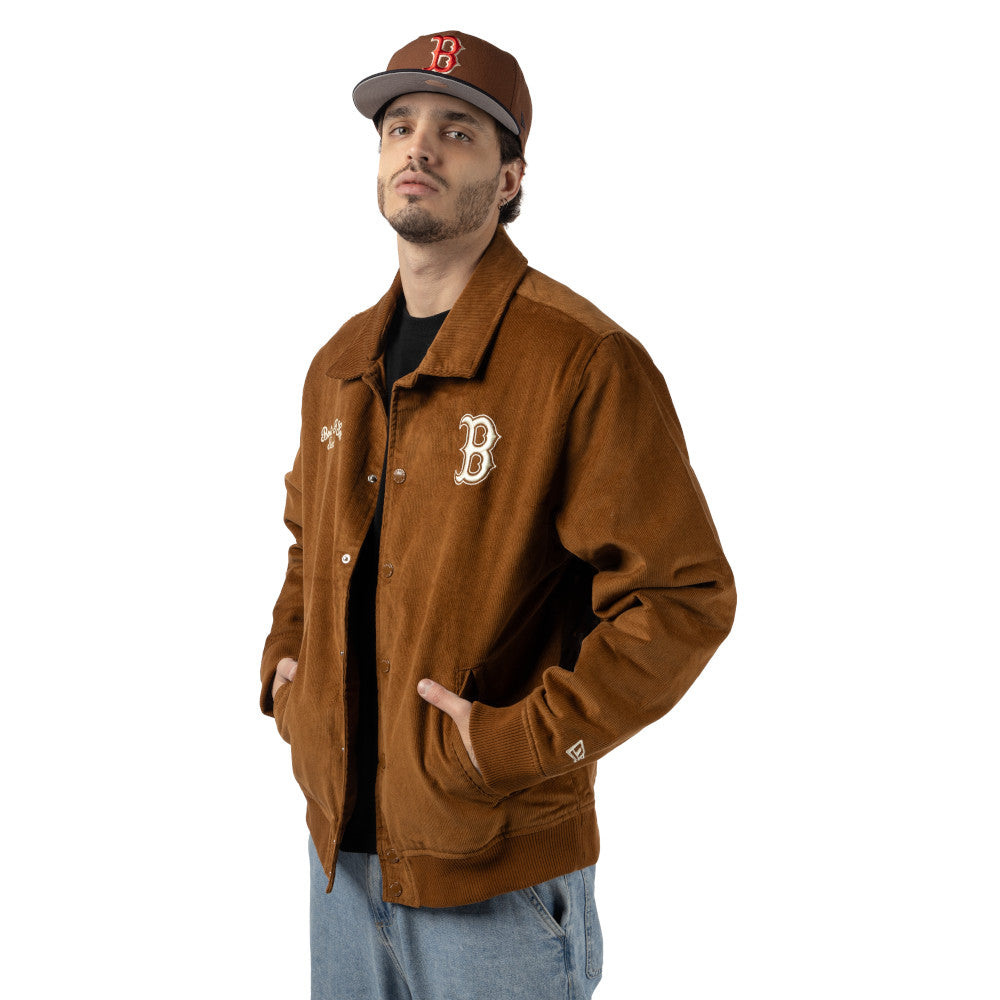 Esta Chamarra New Era de Boston Red Sox de la colección MLB Corduroy presenta un elegante diseño de pana café con el logotipo y el nombre de los Red Sox bordados en el frente en color blanco, cuello tipo polo y bolsas a los lados, y el flag de New Era bordado en la manga izquierda. Luce con estilo y cómprala ya