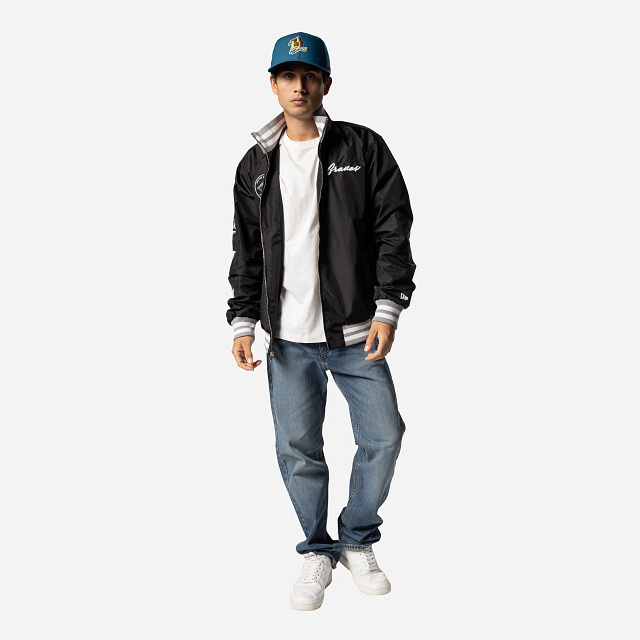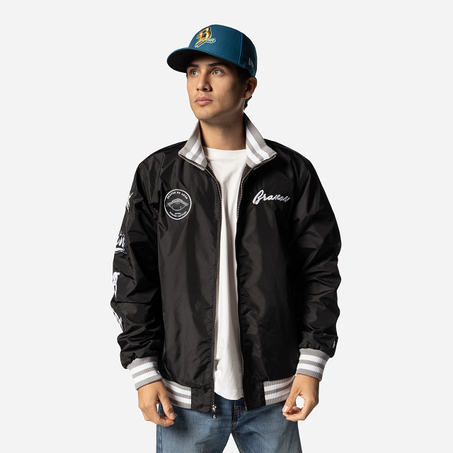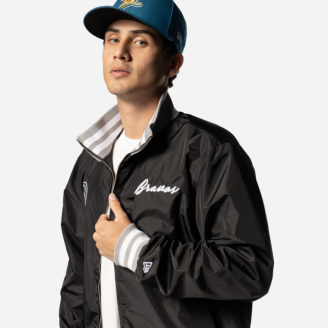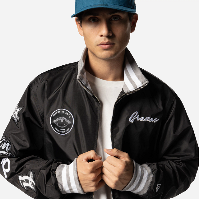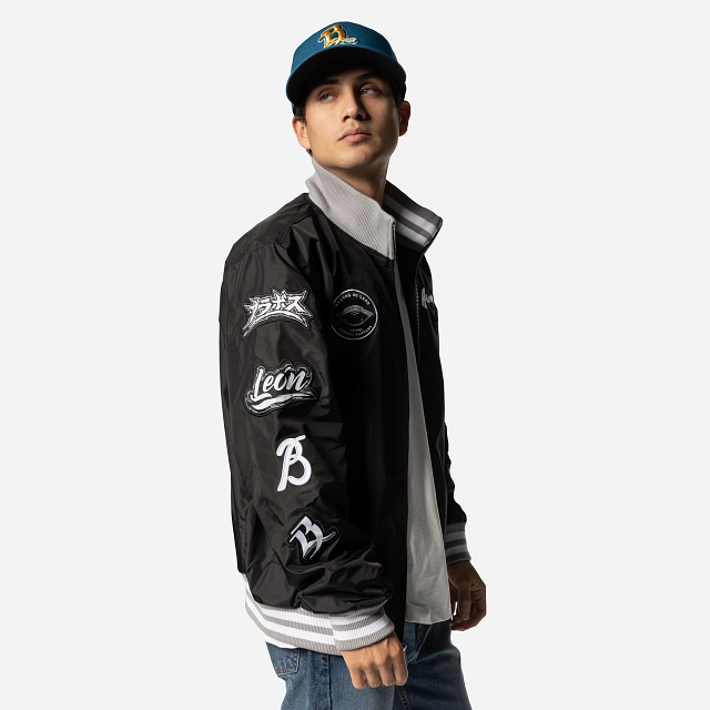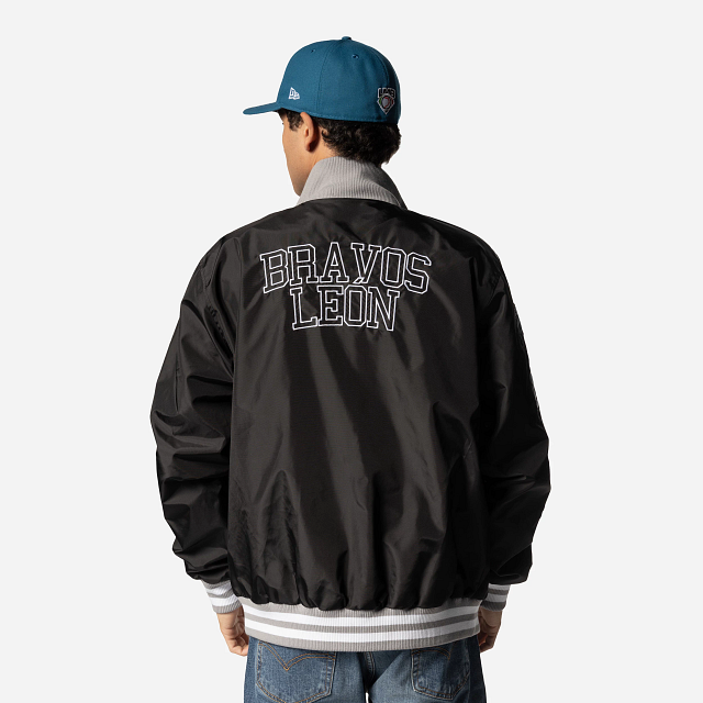 Apoya a tu equipo favorito con estilo con esta Chamarra de Bravos de León de la colección LMB Invenue que presenta un diseño de bomber jacket con el logotipo de Bravos en la parte de en frente, parches en la manga y el flag de New Era bordado en la muñeca izquierda. ¡Dale un toque a tu outfit y cómprala ya!