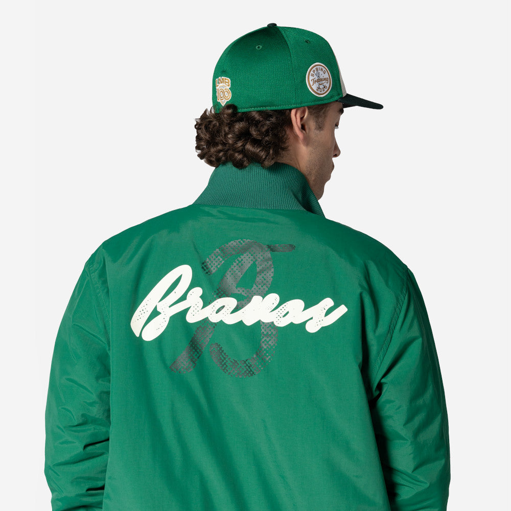 Esta Chamarra New Era de Bravos de León de la colección LMB Spring Training 2025 presenta el logotipo de los Bravos en la parte frontal izquierda, el nombre del equipo sobre el logo al reverso y el flag de New Era bordado en la manga izquierda. Cómprala ya.