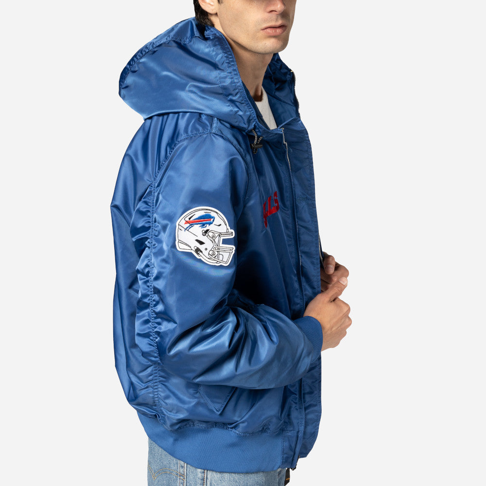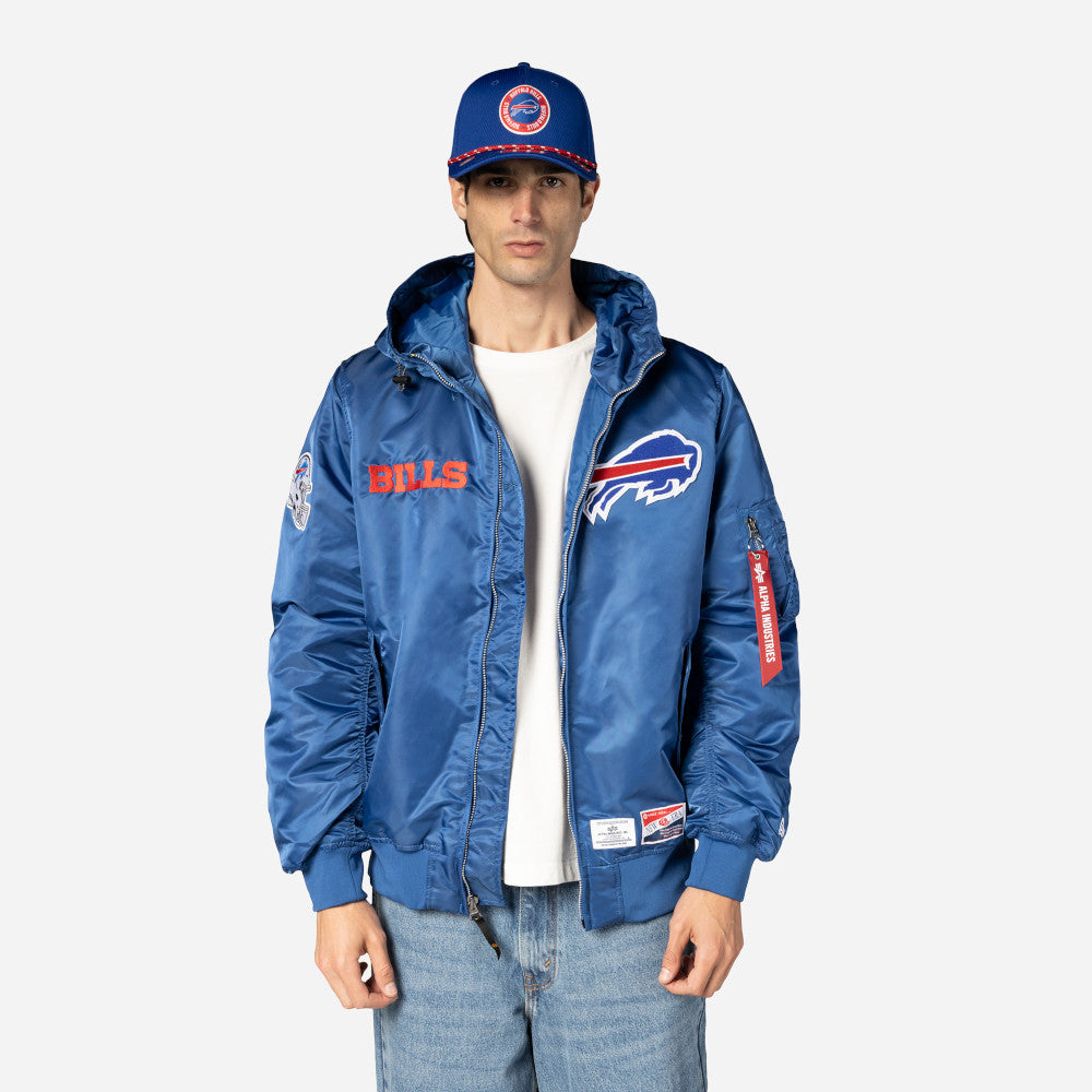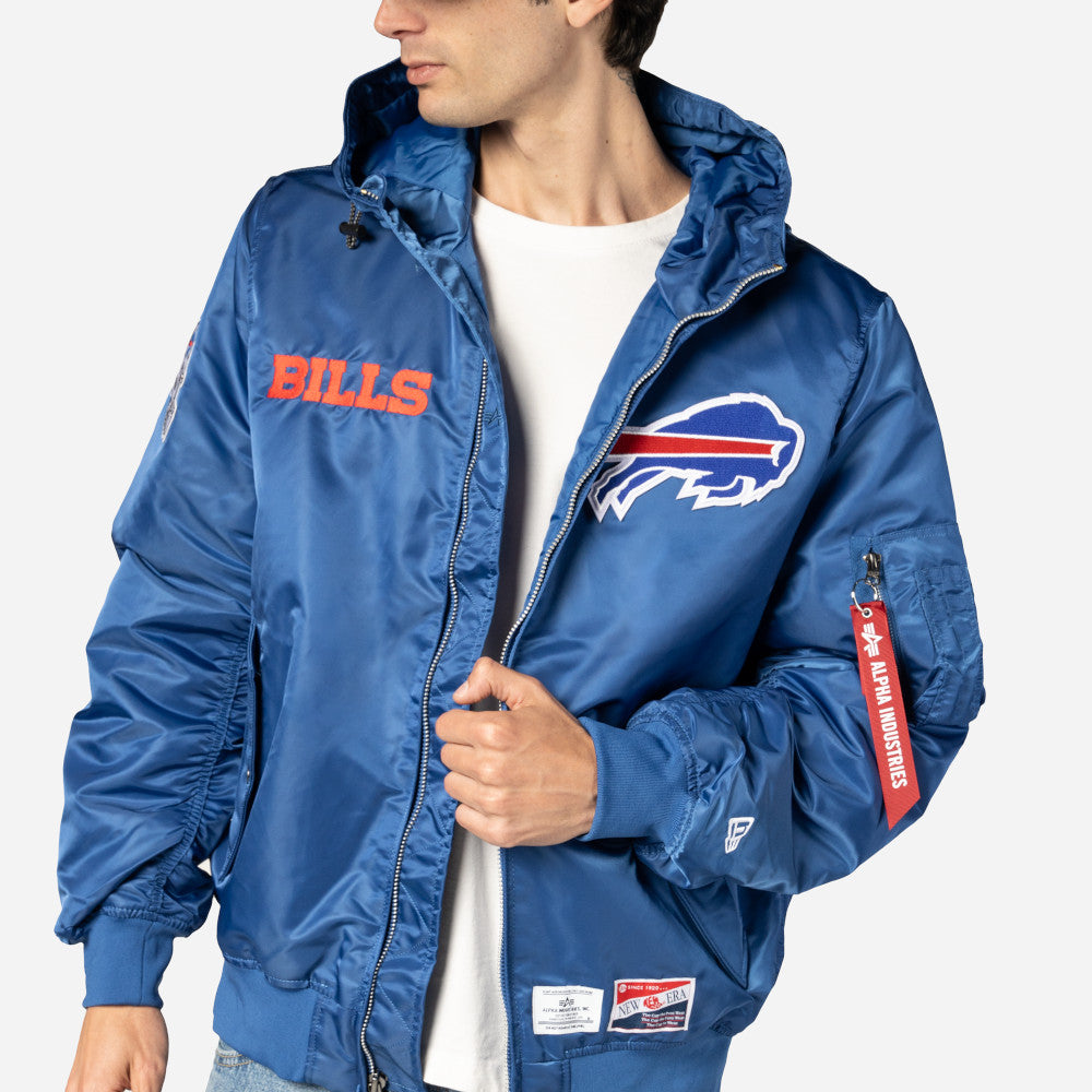 Esta Chamarra L-2B New Era de Buffalo Bills de la colección Alpha Industries X NFL presenta un diseño con el nombre y logotipo de los Bills en la parte frontal, un parche representativo en la manga derecha, un bolsillo con una cinta de Alpha Industries y el flag de New Era bordado en la manga izquierda. Luce con estilo y cómprala ya.