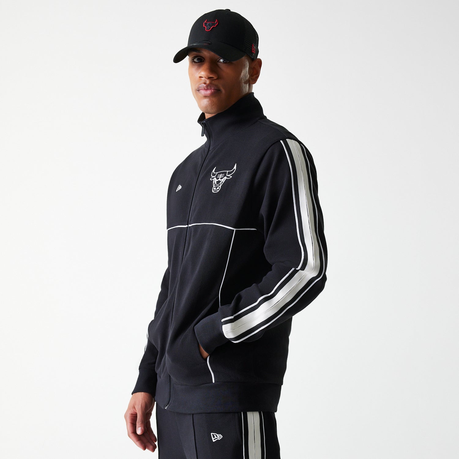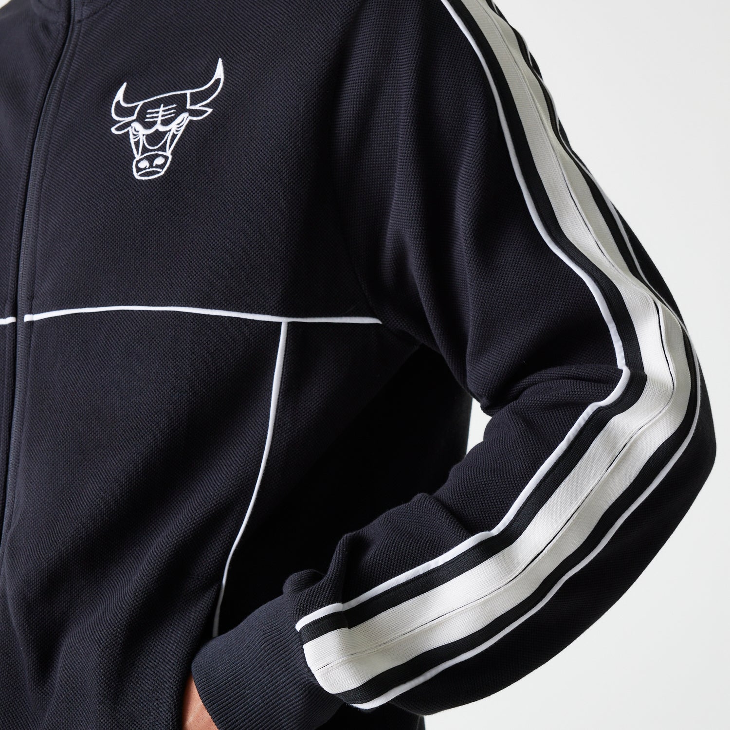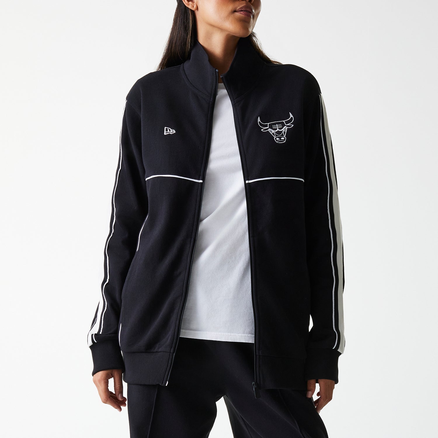 Esta Chamarra New Era de Chicago Bulls de la colección NBA Contemporary presenta el contorno del logotipo de los Bulls y el flag de New Era bordados en la parte frontal. Cómprala ya.