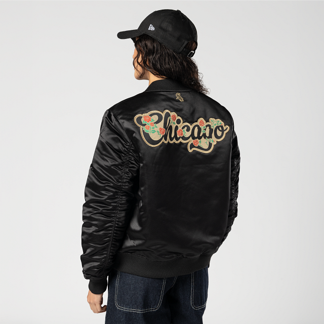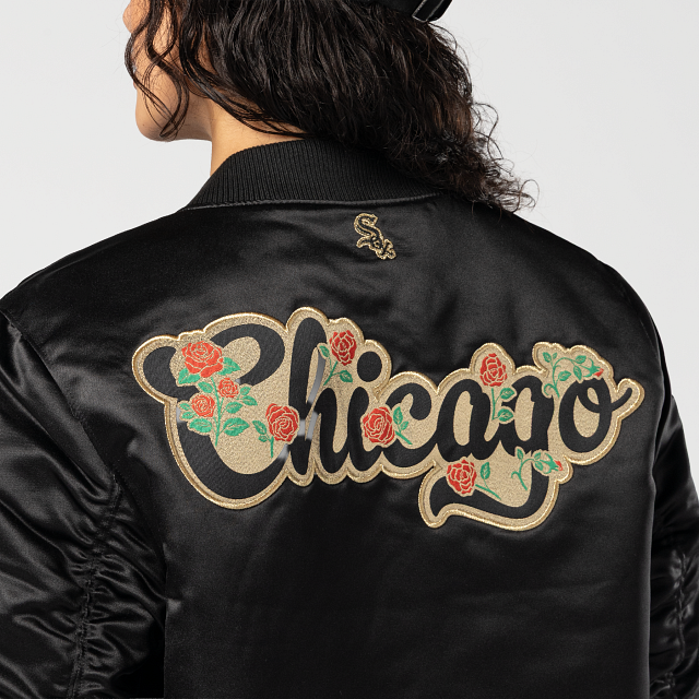 Esta Chamarra Reversible New Era para Mujer de Chicago White Sox de la colección MLB Glam Game presenta el logotipo actual y retro de los White Sox en la parte frontal izquierda, el logo y nombre del equipo con flores en la parte de atrás y el flag de New Era bordado en la manga izquierda. Cómprala ya.