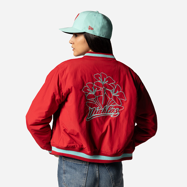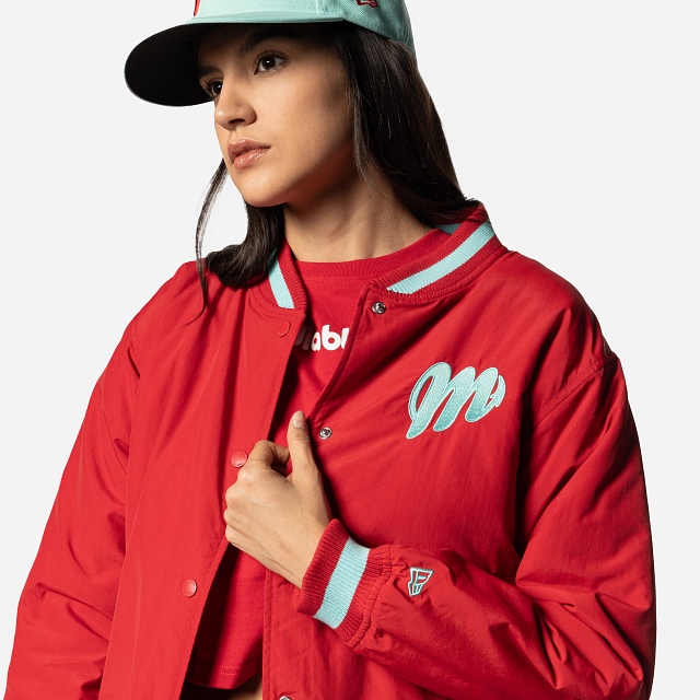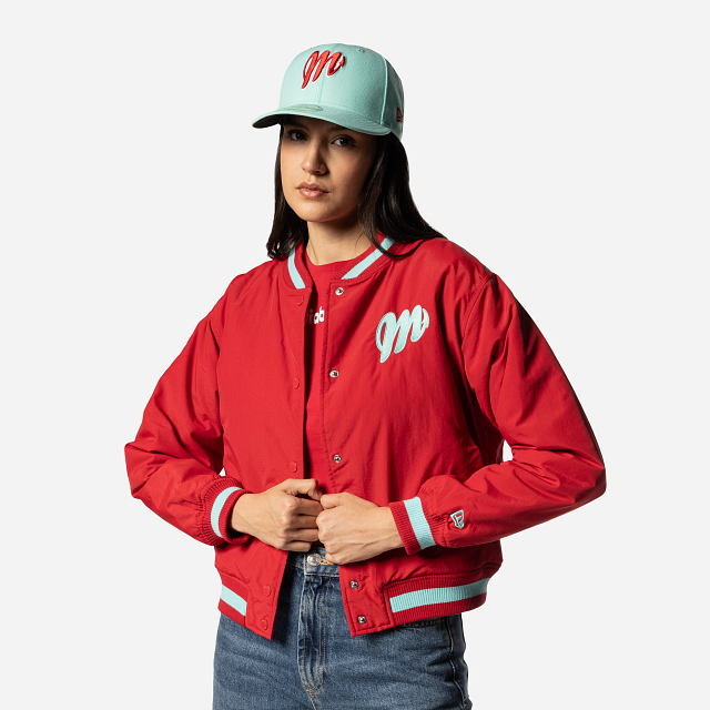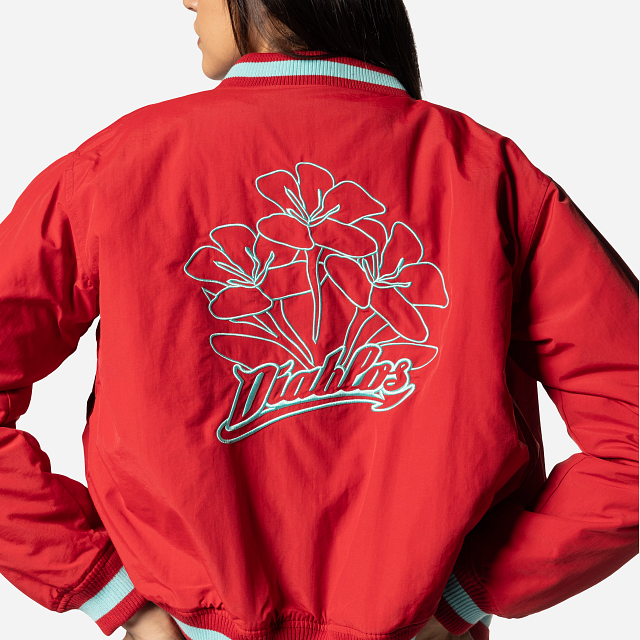 Apoya a tu equipo favorito con estilo con esta Chamarra para Mujer de Diablos Rojos del México de la colección LMB Invenue que presenta un diseño rojo con el logotipo de Diablos bordado en la parte de en frente, un bordado en la espalda y el flag de New Era bordado en la manga izquierda. ¡No te quedes fuera del diamante y cómprala ya!