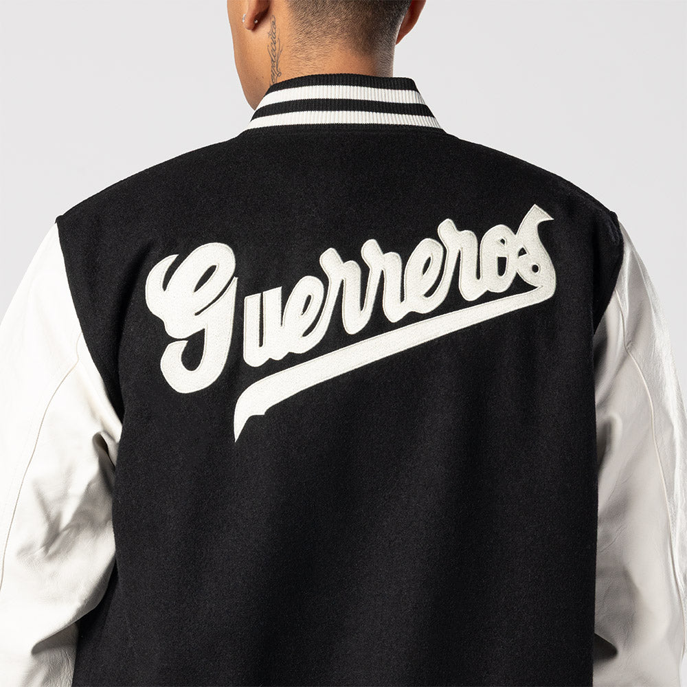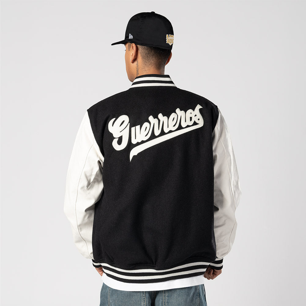 Esta Chamarra Varsity New Era de Guerreros de Oaxaca de la colección LMB Fangear presenta el logotipo de los Guerreros bordado en la parte frontal izquierda y el flag de New Era bordado en la manga izquierda. Cómprala ya.