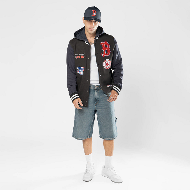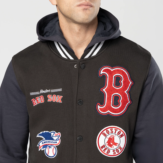 Esta Chamarra New Era de Boston Red Sox de la colección MLB Throwback presenta el nombre y logotipos de los Red Sox en la parte frontal, cierre de botones a presión, gorro y el flag de New Era bordado en la manga izquierda. Cómprala ya.
