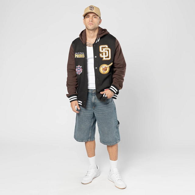 Esta Chamarra New Era de San Diego Padres de la colección MLB Throwback presenta el nombre y logotipos de los Padres en la parte frontal, cierre de botones a presión, gorro y el flag de New Era bordado en la manga izquierda. Cómprala ya.