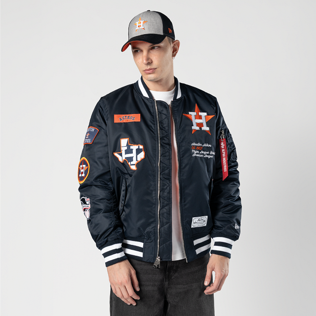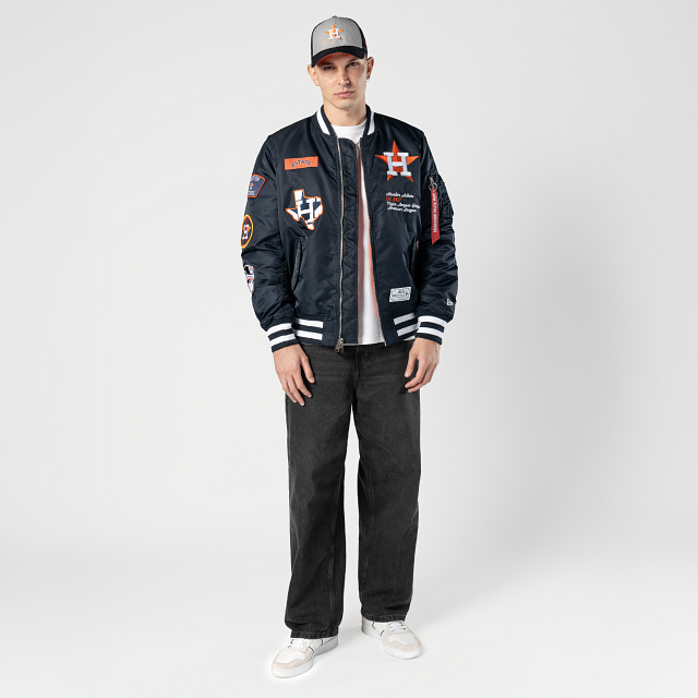 Esta Chamarra New Era de Houston Astros de la colección Alpha Industries X MLB presenta el logo de los Astros en la parte frontal izquierda, parches representativos del equipo del lado derecho, un bolsillo con una cinta de Alpha Industries y el flag de New Era bordado en la manga izquierda. Cómprala ya.