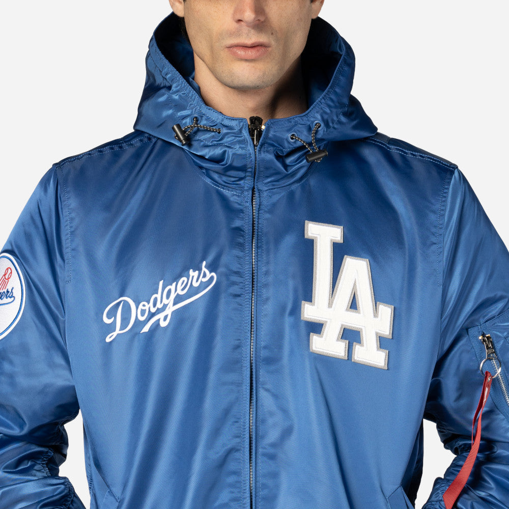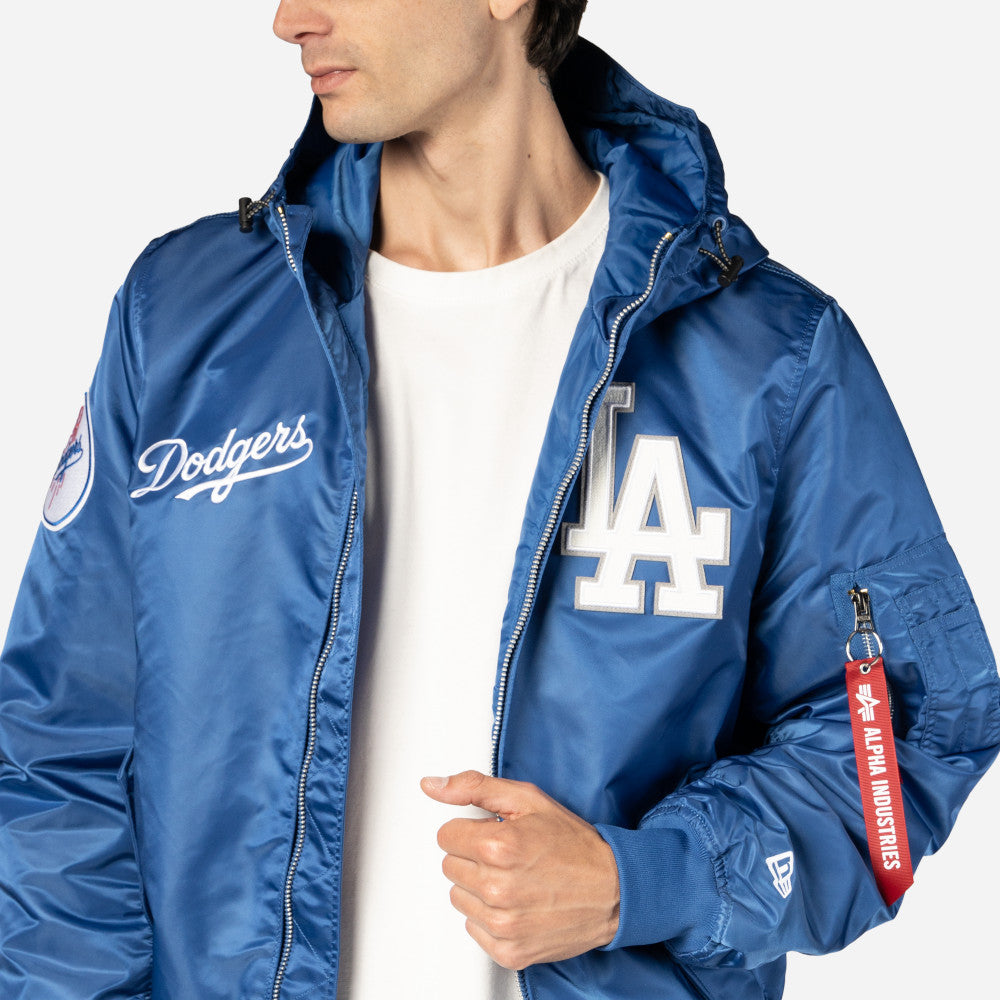 Esta Chamarra L-2B New Era de Los Angeles Dodgers de la colección Alpha Industries X MLB presenta un diseño con el nombre y logotipo de los Dodgers en la parte frontal, el logo retro del equipo en la manga derecha, un bolsillo con una cinta de Alpha Industries y el flag de New Era bordado en la manga izquierda. Luce con estilo y cómprala ya.