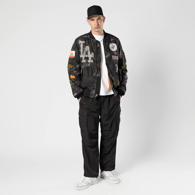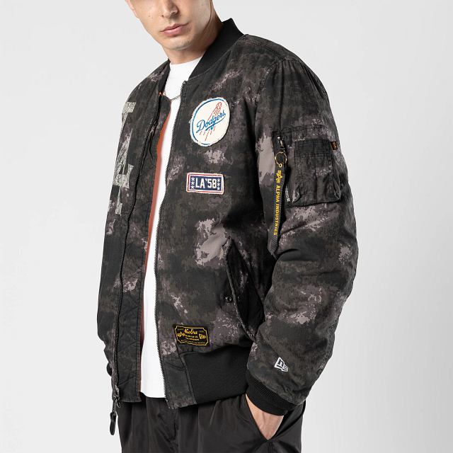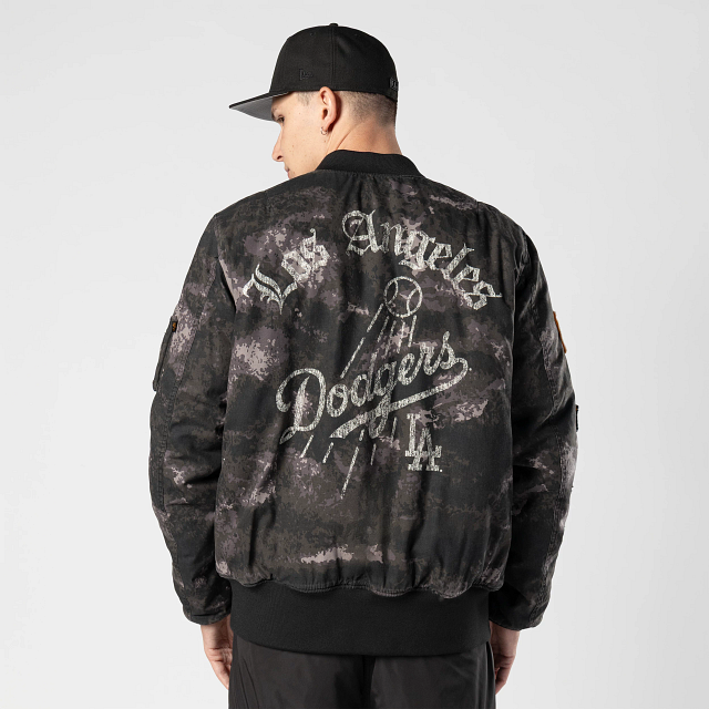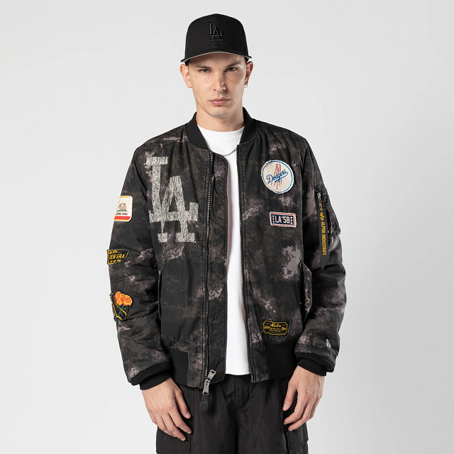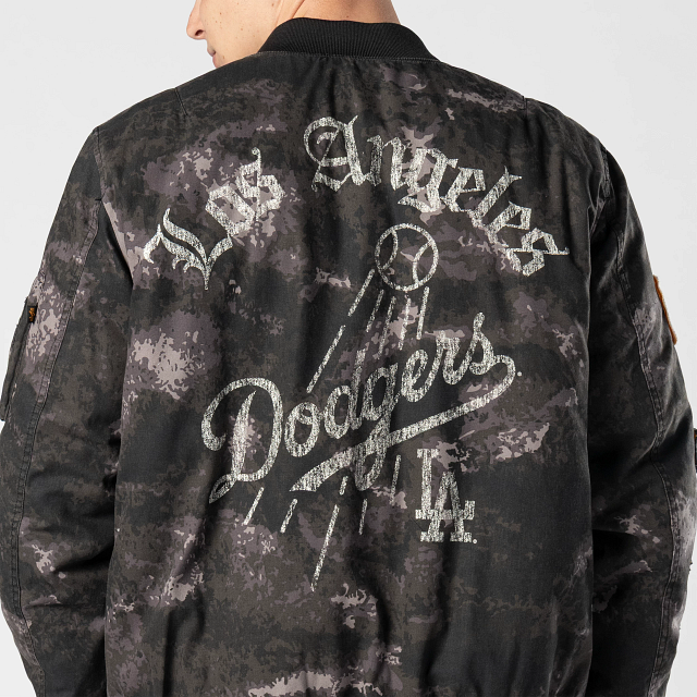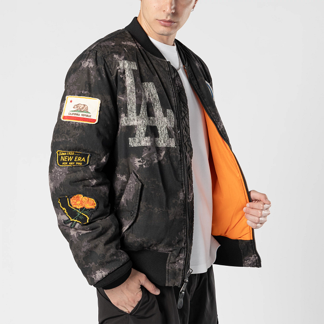 Esta Chamarra New Era de Los Angeles Dodgers de la colección Alpha Industries X MLB presenta un diseño de camuflaje, el logo de los Dodgers en la parte frontal, parches representativos del equipo del lado derecho, un bolsillo con una cinta de Alpha Industries, el nombre y logo del equipo en la parte de atrás y el flag de New Era bordado en la manga izquierda. Cómprala ya.