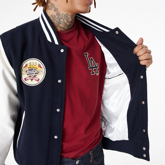 Esta Chamarra New Era de Los Angeles Dodgers de la colección MLB Heritage presenta un estilo universitario con logotipos de los Dodgers en el pecho, un logo oversize en la espalda y el flag New Era en la manga izquierda. Dale un toque a tu outfit esta temporada y cómprala ya.