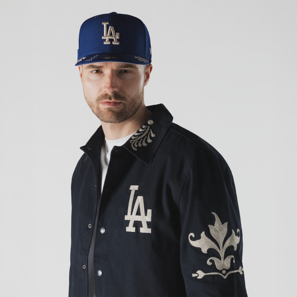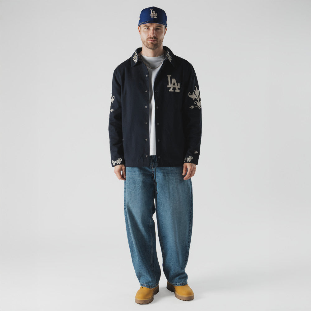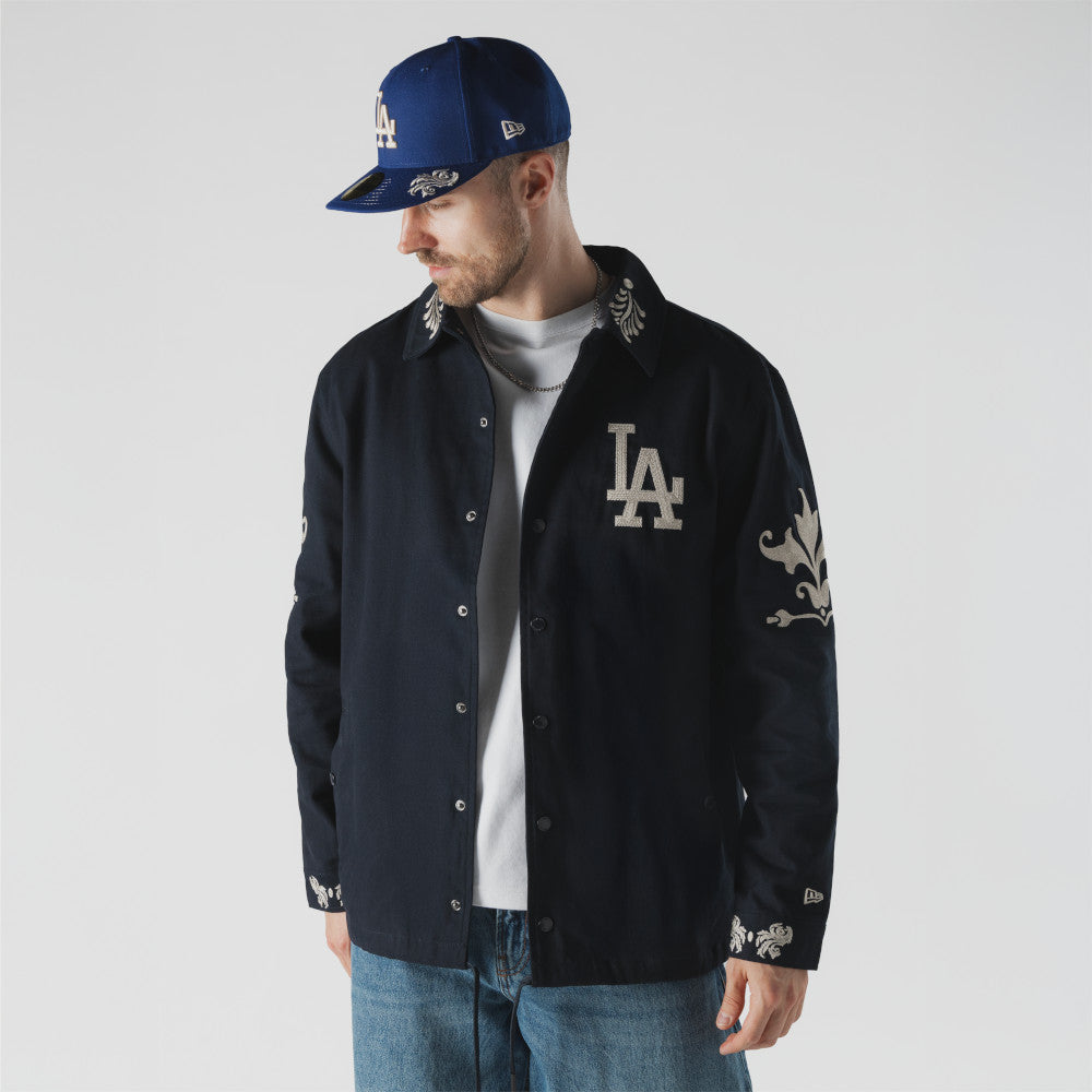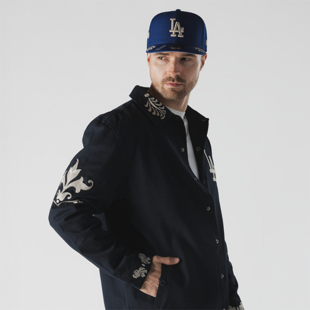 Esta Chamarra New Era estilo coach de Los Angeles Dodgers de la colección MLB Wordmark presenta detalles tipo paisley, el logotipo de los Dodgers bordado en la parte frontal izquierda, script del equipo bordado en la parte de atrás y el flag de New Era bordado en la manga izquierda. Cómprala ya.