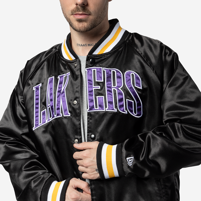 Esta Chamarra New Era de Los Angeles Lakers de la colección NBA Off Court Retro Wordmark presenta un diseño satinado con el nombre de los Lakers bordado en el pecho, el logotipo del equipo cubriendo la espalda y el flag de New Era bordado en la manga izquierda. Dale un toque a tu outfit y cómprala ya.