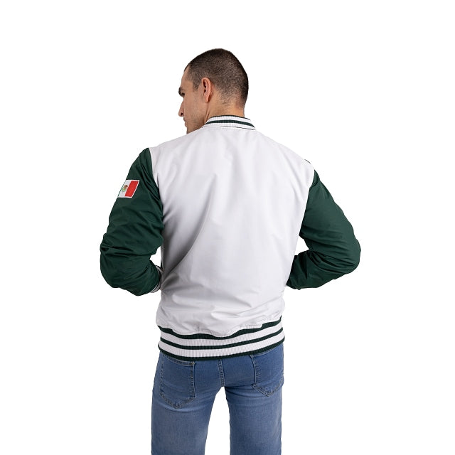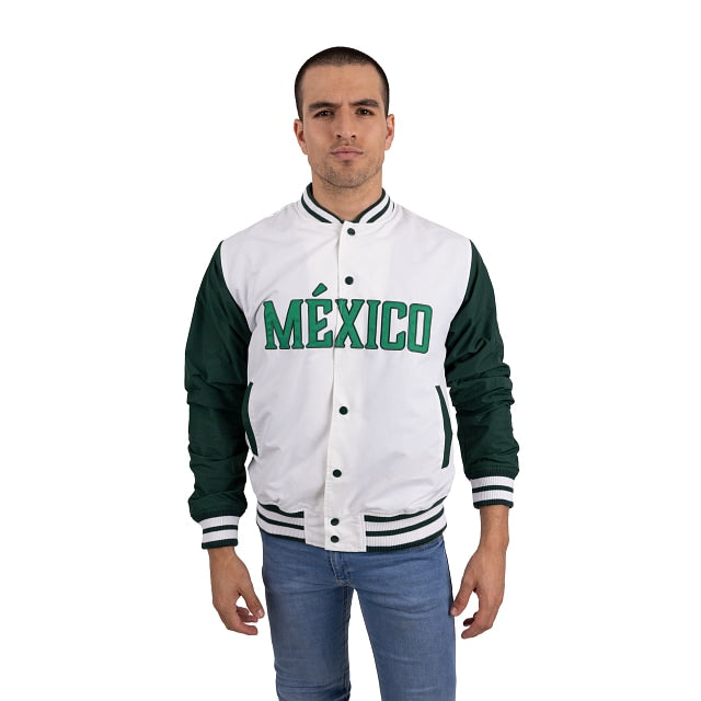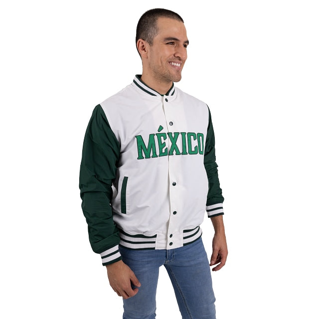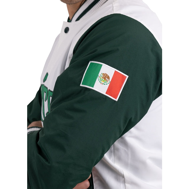 Lleva los colores de México a donde quiera que vayas con esta Chamarra de México la cual presenta el nombre de México al frente y la bandera en la manga izquierda. Demuéstrale al mundo que México es grande y cómprala ya.