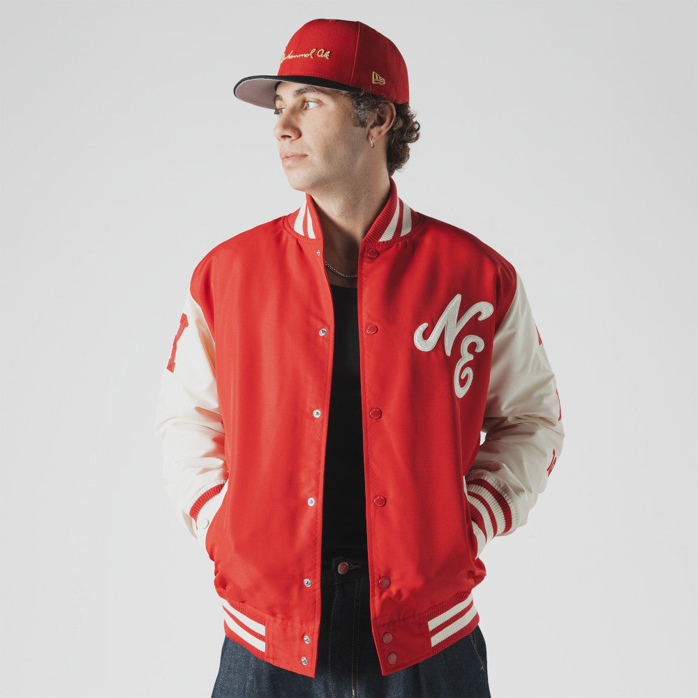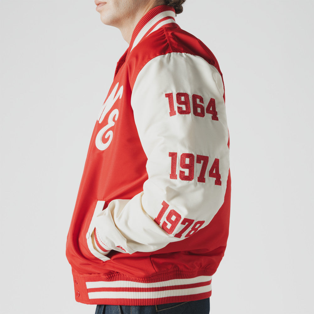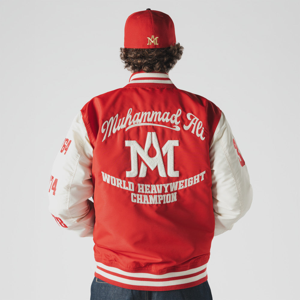 Esta Chamarra Bomber New Era de la colección Muhammad Ali presenta el logotipo de New Era en la parte frontal izquierda, años clave de su carrera en la manga derecha, 3X en la manga izquierda, nombre y logotipo del boxeador en la parte de atrás y el flag de New Era bordado en la manga izquierda. Cómprala ya.
