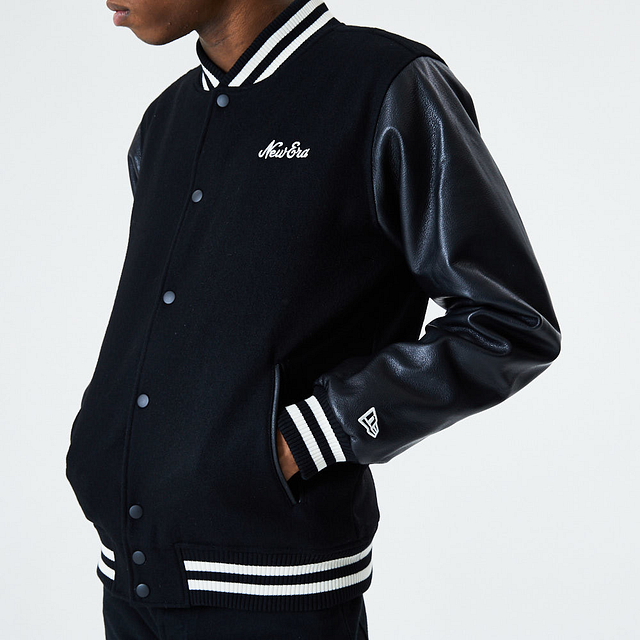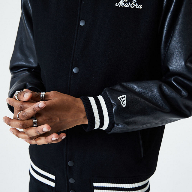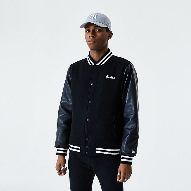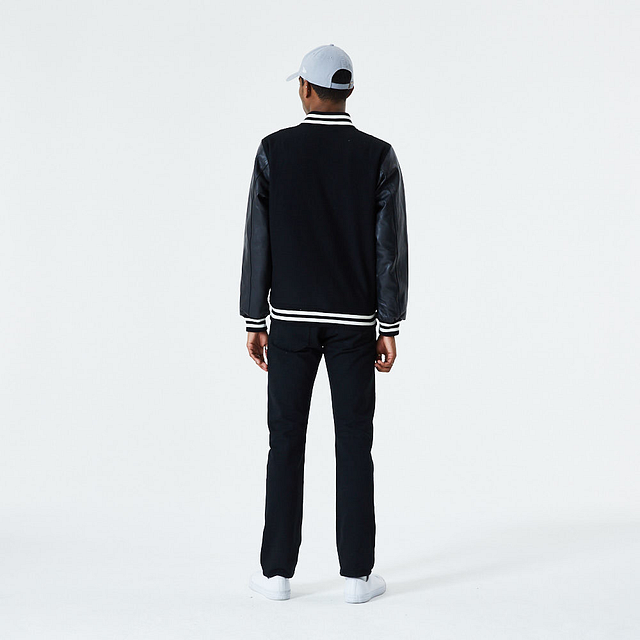 Esta Chamarra New Era de la colección New Era Essentials presenta un diseño tipo universitario en color negro, detalles blancos en las mangas y cuello, un bordado de New Era en el frente y el flag New Era en la manga izquierda. Luce con estilo y cómprala ya.