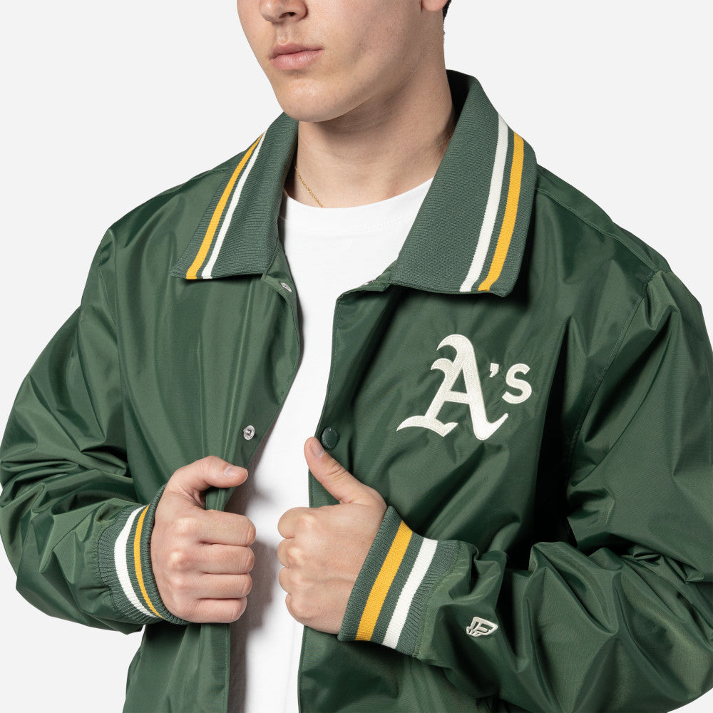Esta Chamarra New Era de Oakland Athletics de la colección MLB Throwback presenta el logo de los Athletics en la parte frontal izquierda, el nombre y logo del equipo al reverso y el flag de New Era bordado en la manga izquierda. Eleva tu outfit y cómprala ya.