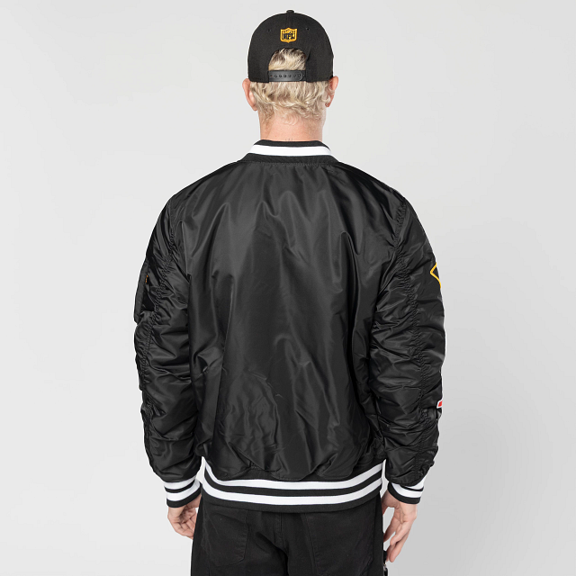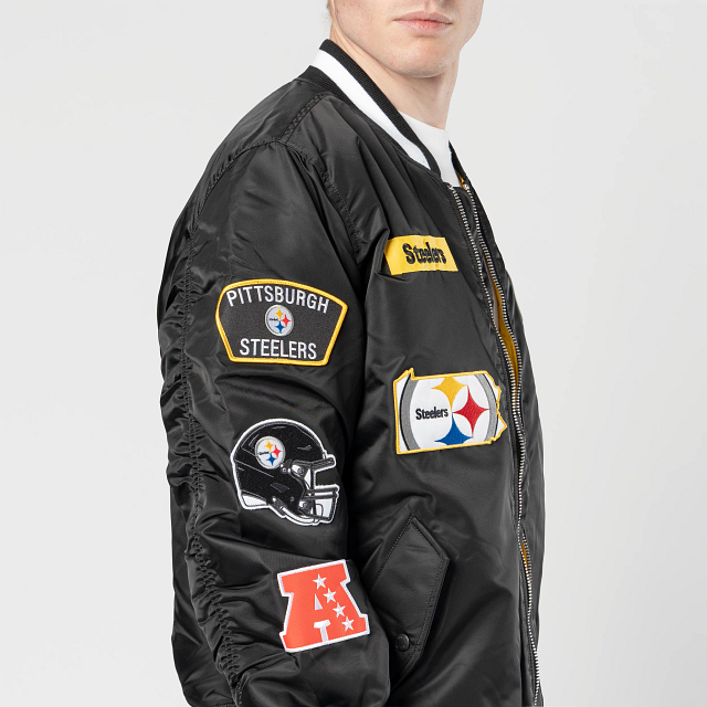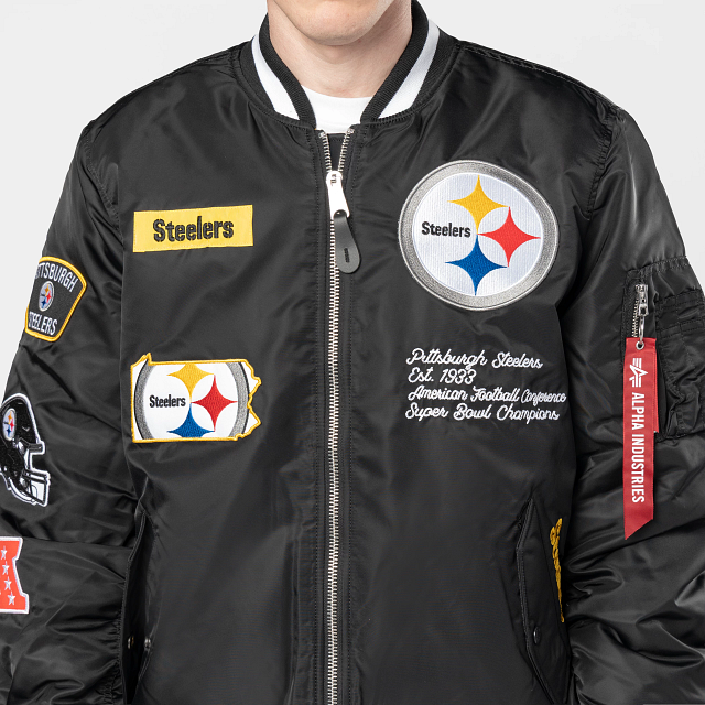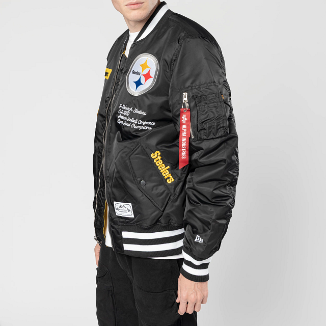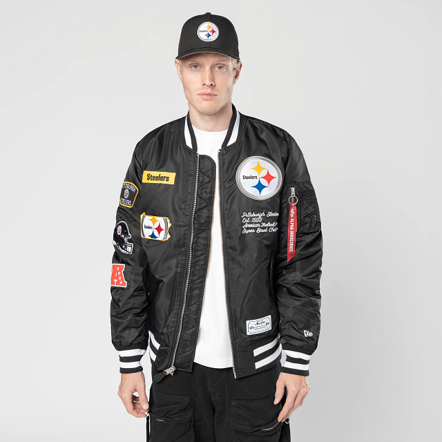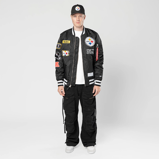 Esta Chamarra New Era de Pittsburgh Steelers de la colección Alpha Industries X NFL presenta el logo de los Steelers en la parte frontal izquierda, parches representativos del equipo del lado derecho, un bolsillo con una cinta de Alpha Industries y el flag de New Era bordado en la manga izquierda. Cómprala ya.