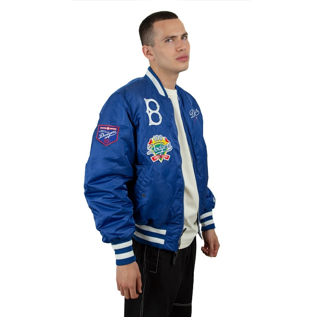 Esta MA-1 Bomber Jacket Alpha Industries X Brooklyn Dodgers presenta parches de los Dodgers bordados en el pecho y en las mangas con un logo del equipo en la parte trasera. El lado reversible de la chamarra presenta un diseño en camuflaje militar y una etiqueta de New Era con un mensaje de unión en diferentes idiomas. Cómprala ya.